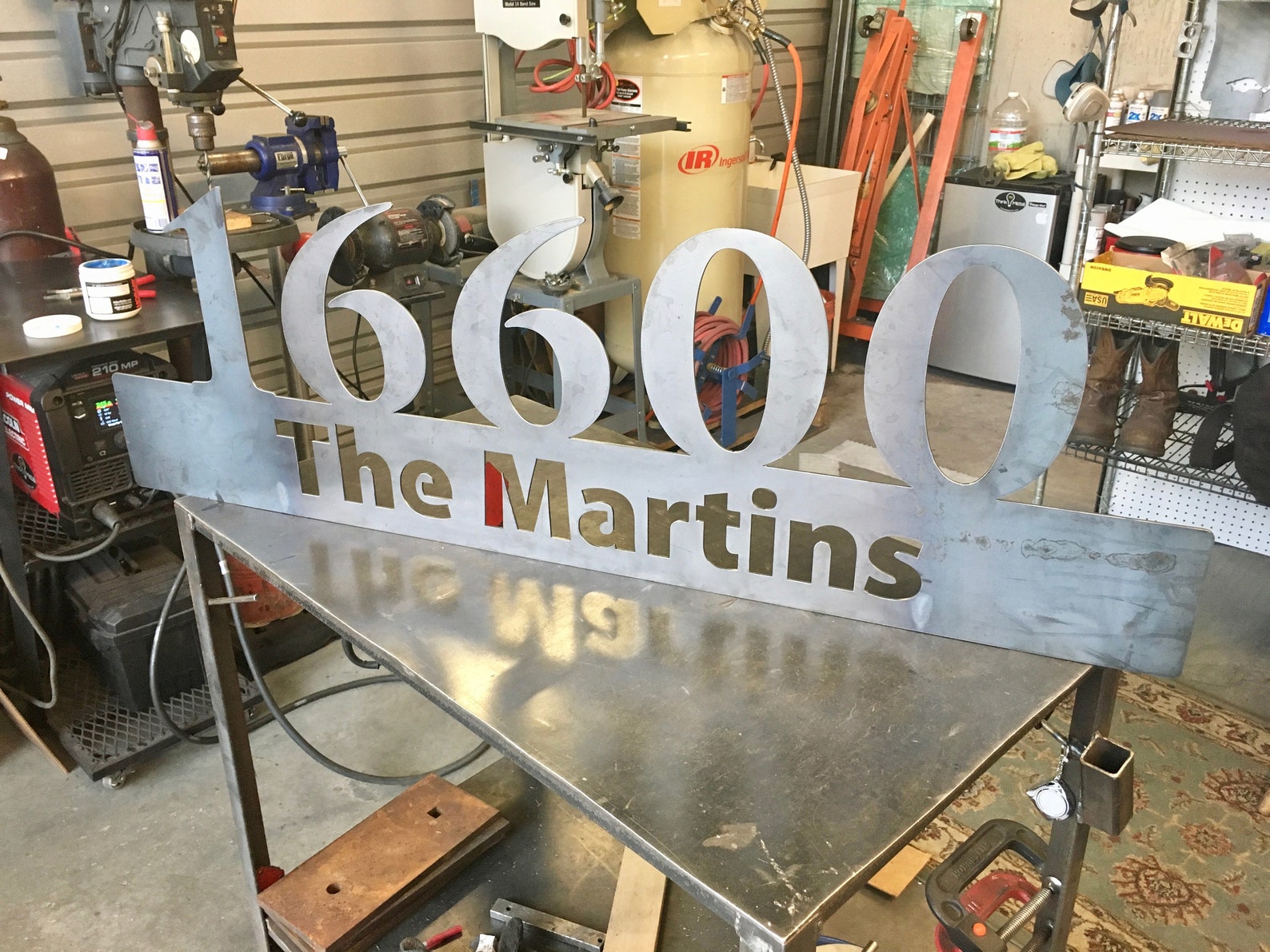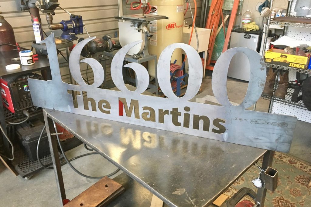 This personalized metal sign is a perfect addition to your home, office, shop, or garage! This product is great to hang near your front entrance, inside your home, on your door or patio, in your man cave, and many more places. Item pictured is raw with no paint, comparable to clear coat. This is a great gift for family and friends.