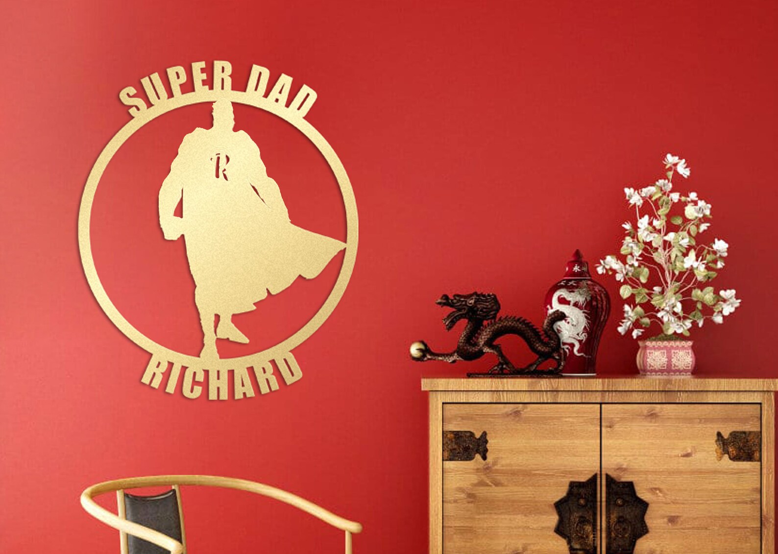 Metal Customized Wall Art , Man Wall Decor, Custom Gift for Dads and Him, Modern Home Decoration for Super Fathers, Housewarming Gift