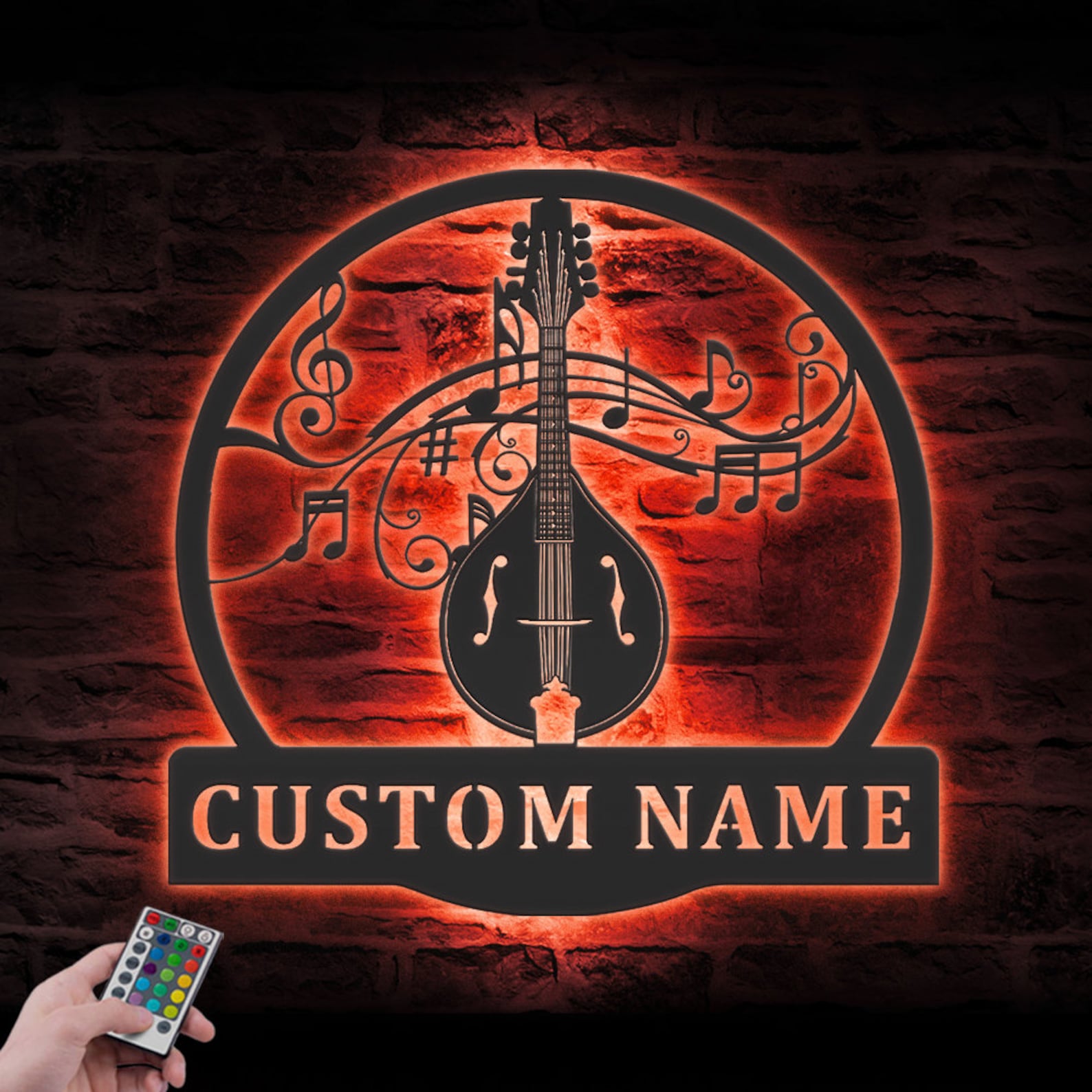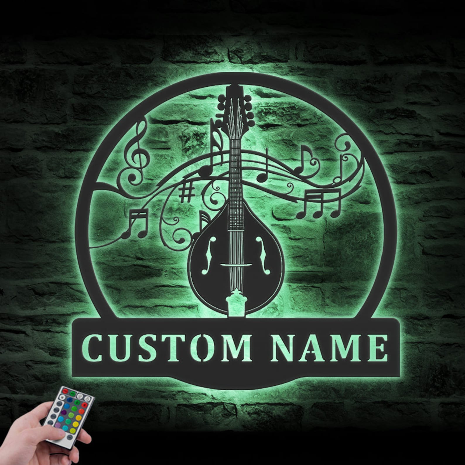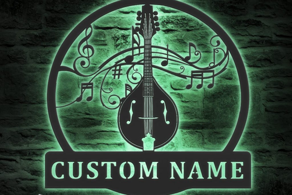 Be the first to review “Custom Mandolin Musical Instrument Metal Wall Art – LED Light, Personalized Player Sign”