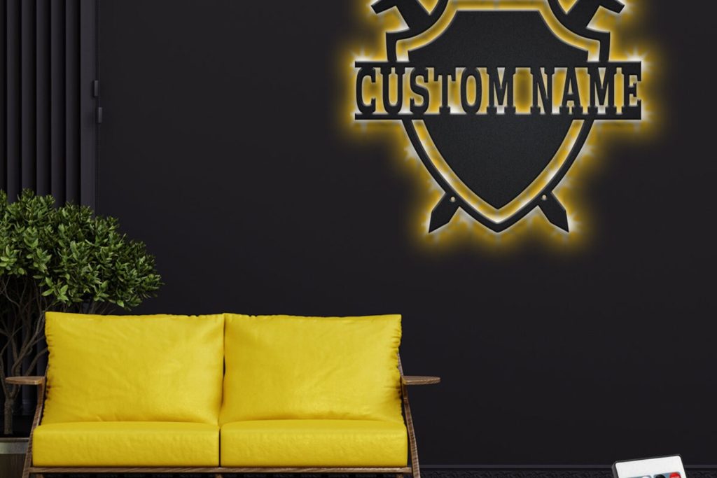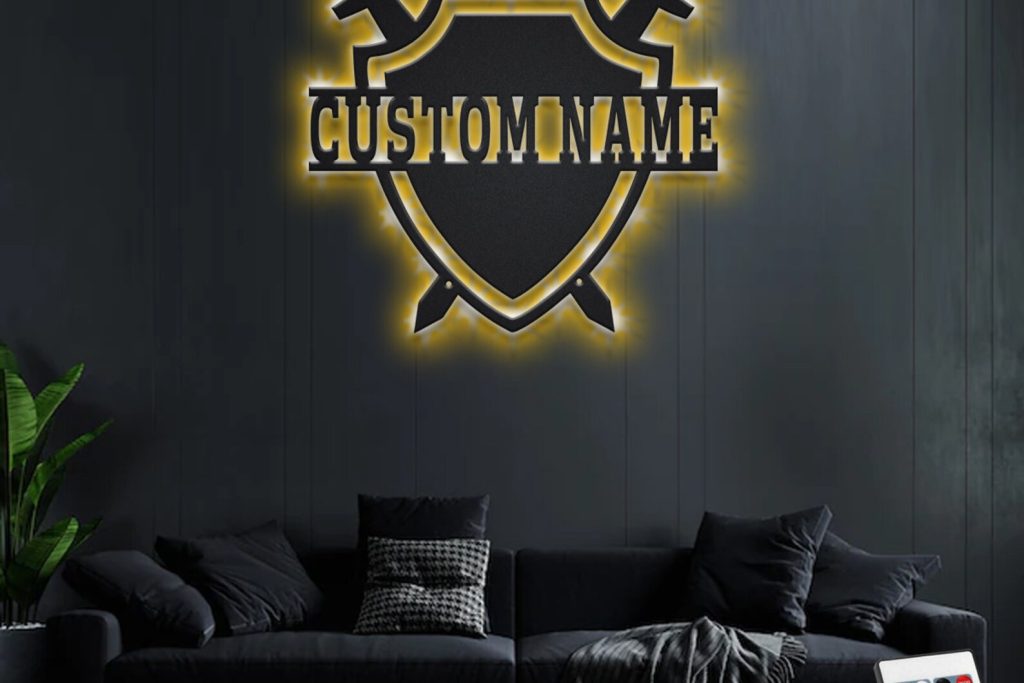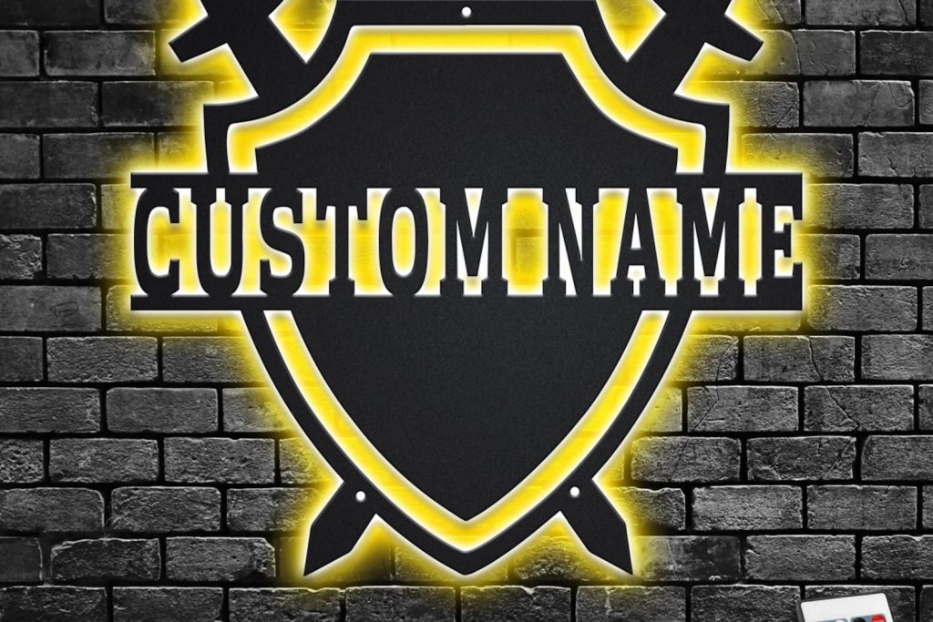 Custom Medieval Shield Metal Art with LED Light