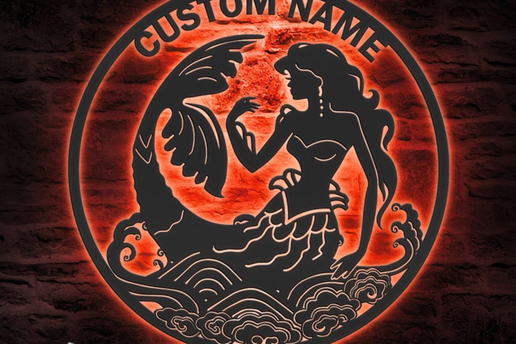 Be the first to review “Custom Mermaid Metal Sign, LED Light, Tail Name Sign”