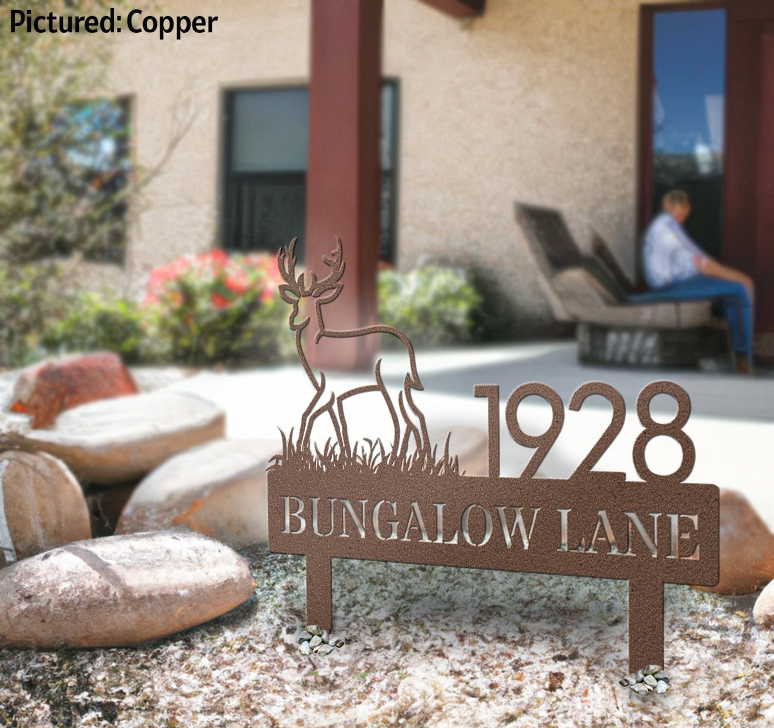 Metal Address SigntStreet Number SignstGround With StakestCustom House NumbertSigns for Front LawntMountain Cabin DecortDeer Moose DecortVintage AirBNB DecortAddress Sign Elktlarge black whitetcopper red silvertfront door porchtFamily Name Rock