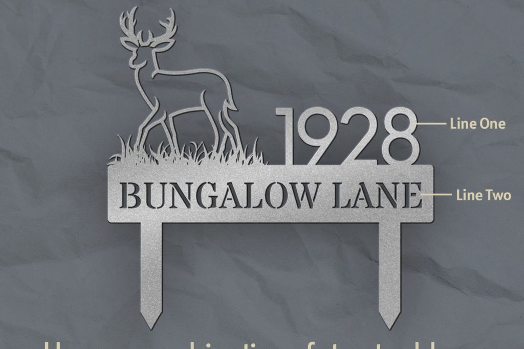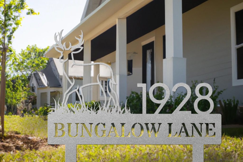 Elevate your outdoor space with our exquisite steel lawn address signs, seamlessly blending nature-inspired designs with functional elegance. At One Bungalow Lane, we take pride in our craftsmanship and personalized charm. Whether displaying your address, family name, or a combination of both, our signs infuse a unique touch into your abode.