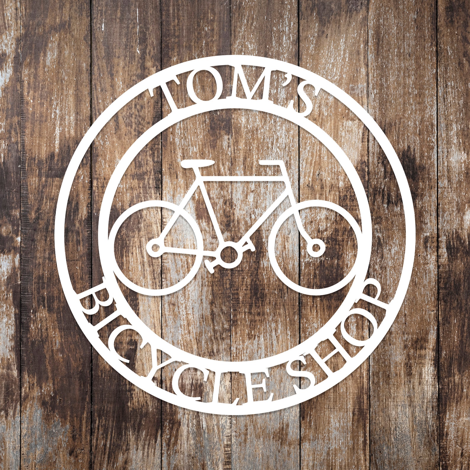 Custom Metal Bike Sign, Personalized Name Sign, Cyclist Decor, Custom Shop Signboard Sign, Gift for Bike Lovers, Garage Sign, Outdoor Decor