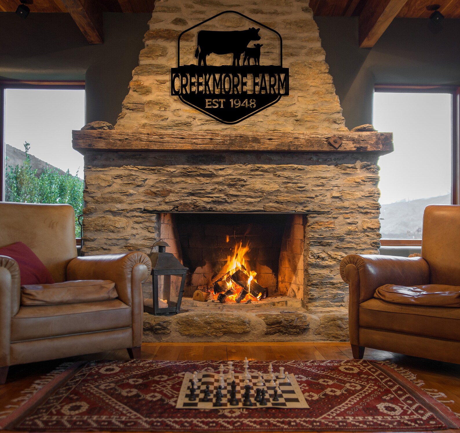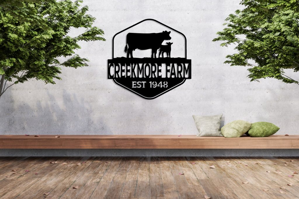 Be the first to review “Custom Metal Farm Name Sign with Cow Decor”