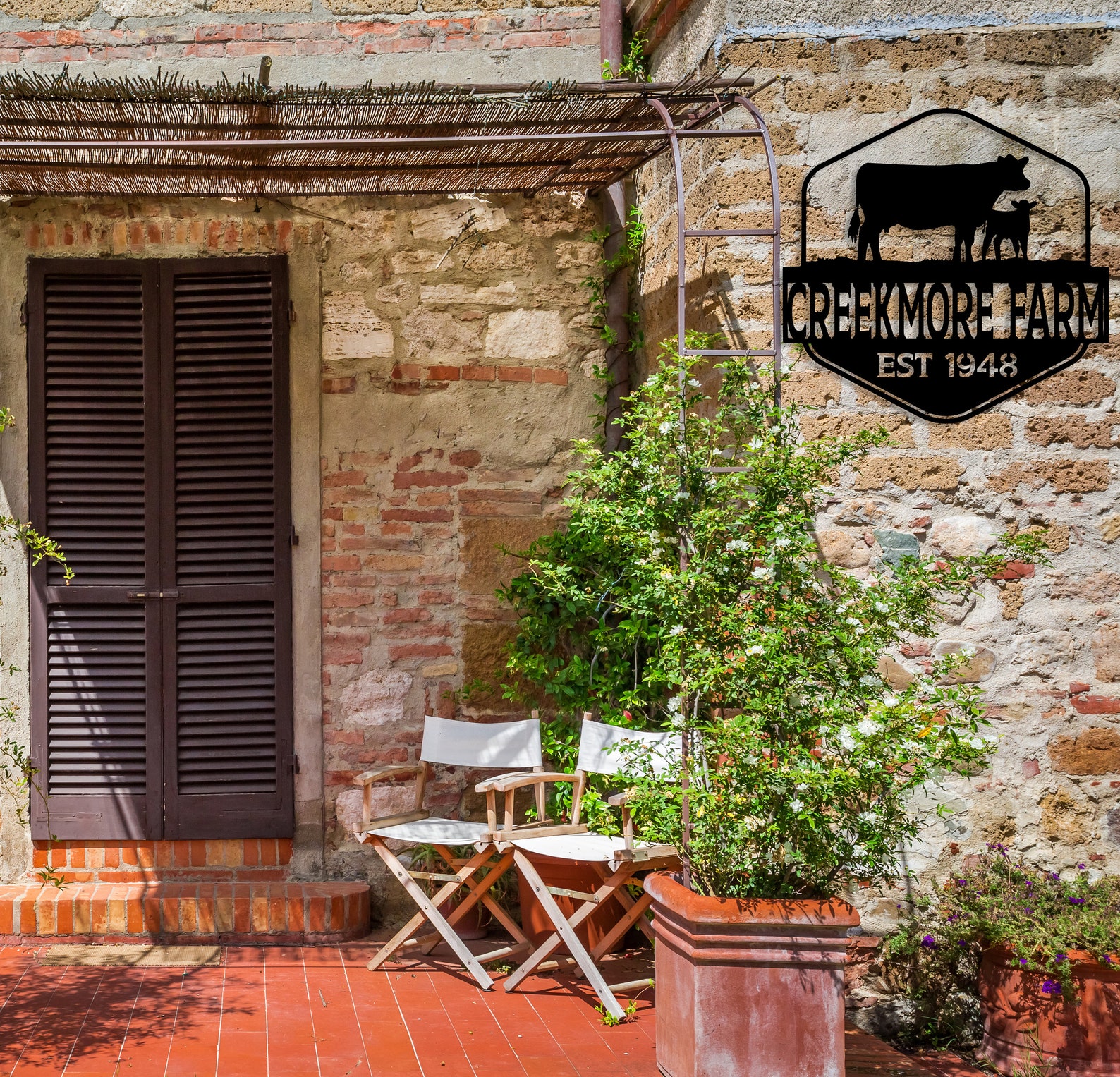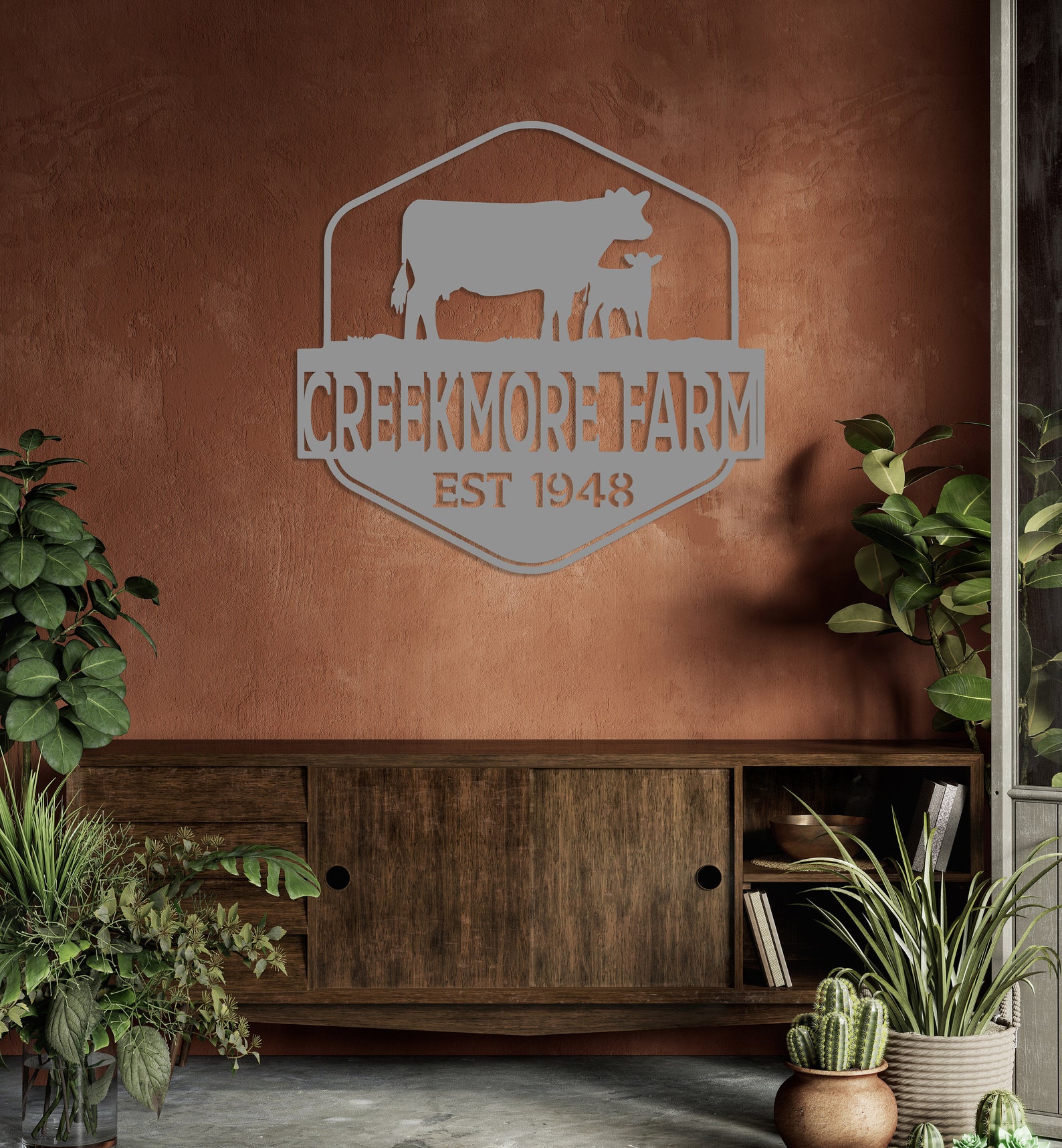 Custom Metal Farm Name Sign, Farmhouse Decor, Personalized Cow Sign, Outdoor Wall Decor, Large Custom Decor, Farm Entrance Sign, Gate Sign