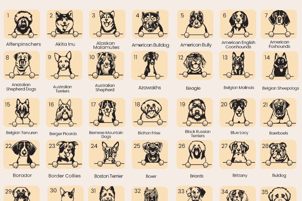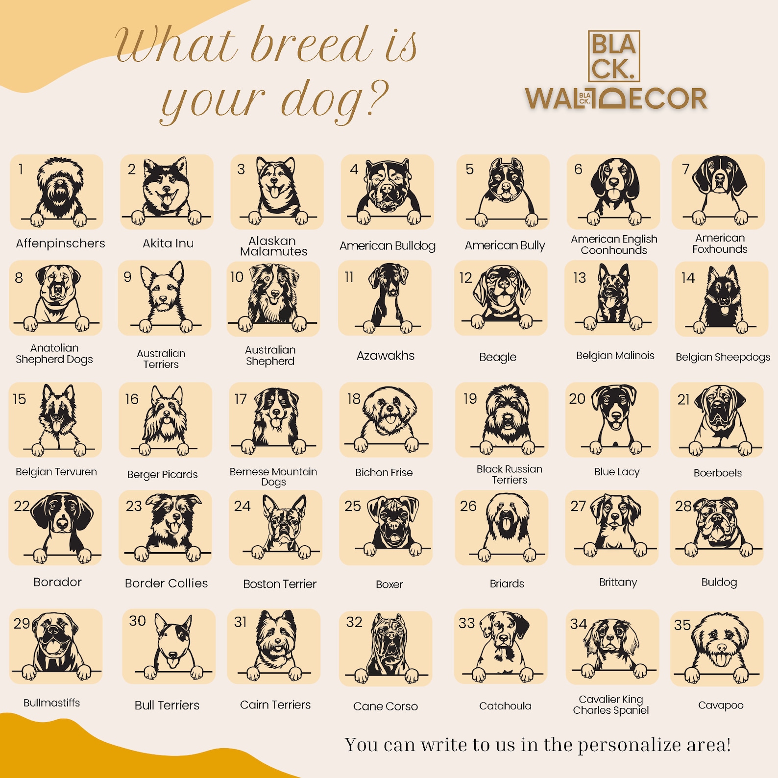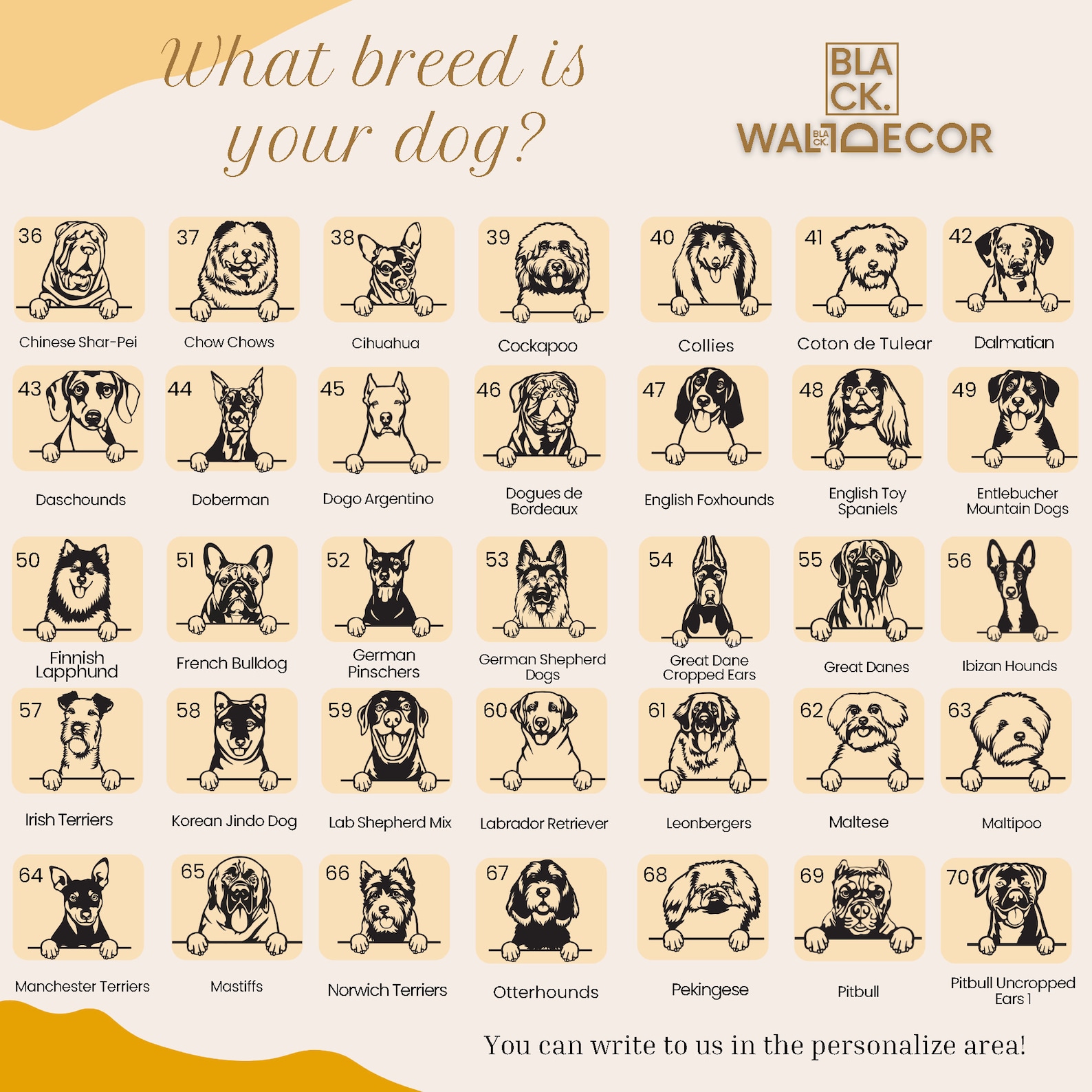 After finding the breed of your own dog among 90 breeds, you need to write the breed number and breed name in the personalization field,