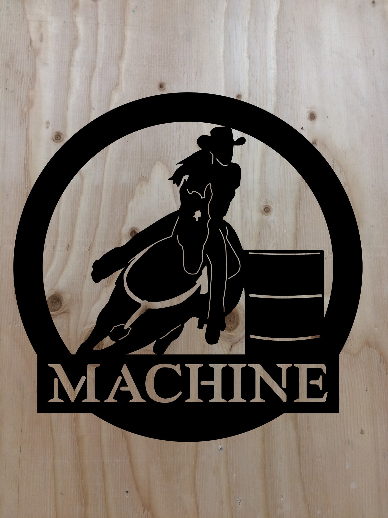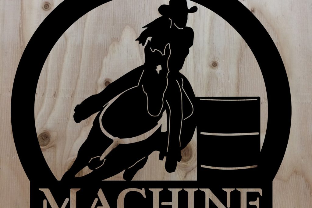 Made in the USA from 16 gauge steel. CNC plasma cut and hand finished. Powder coat for durability. More designs at our facebook page @rmfsigns Reed Machine and Fabrication LLC. Custom names and sizes available. Barrel Racer, Horse, Cowgirl, Rodeo, Western wall decor.