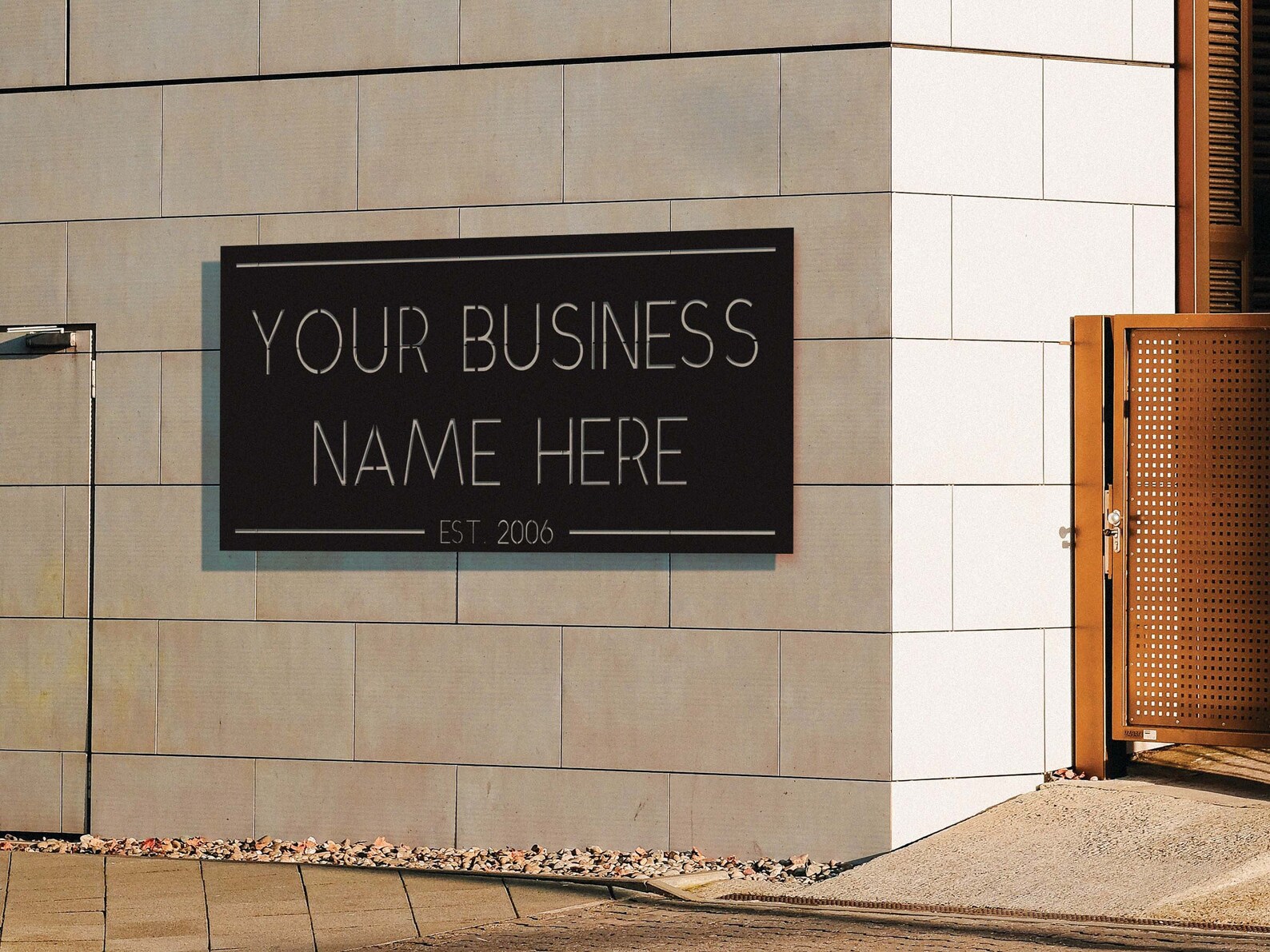 Your metal business sign is a sleek and professional representation of your brand. Crafted from high-quality metal, the sign boasts a clean and polished surface that catches the eye and commands attention.