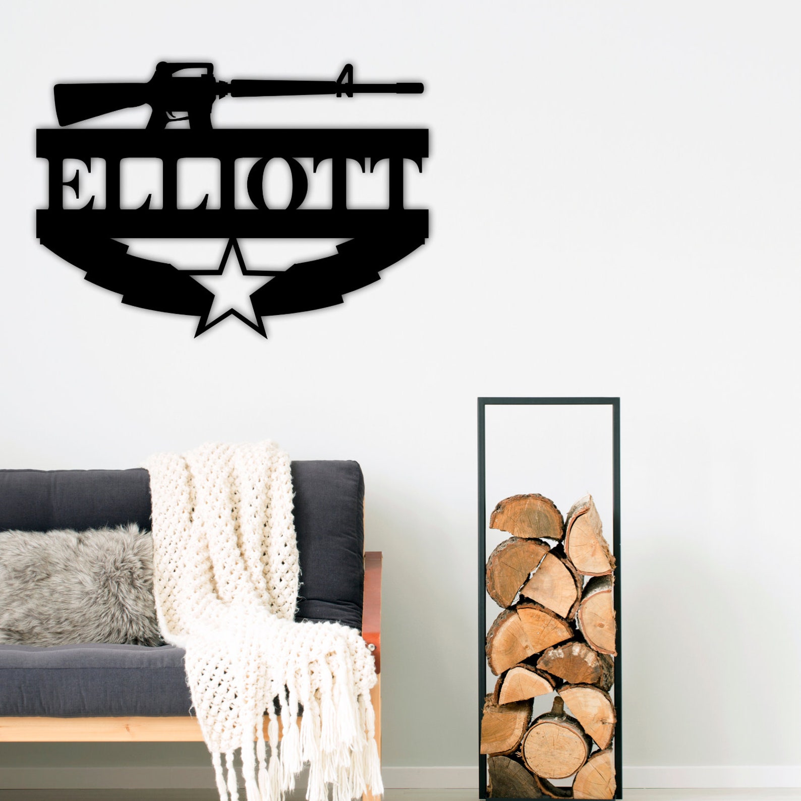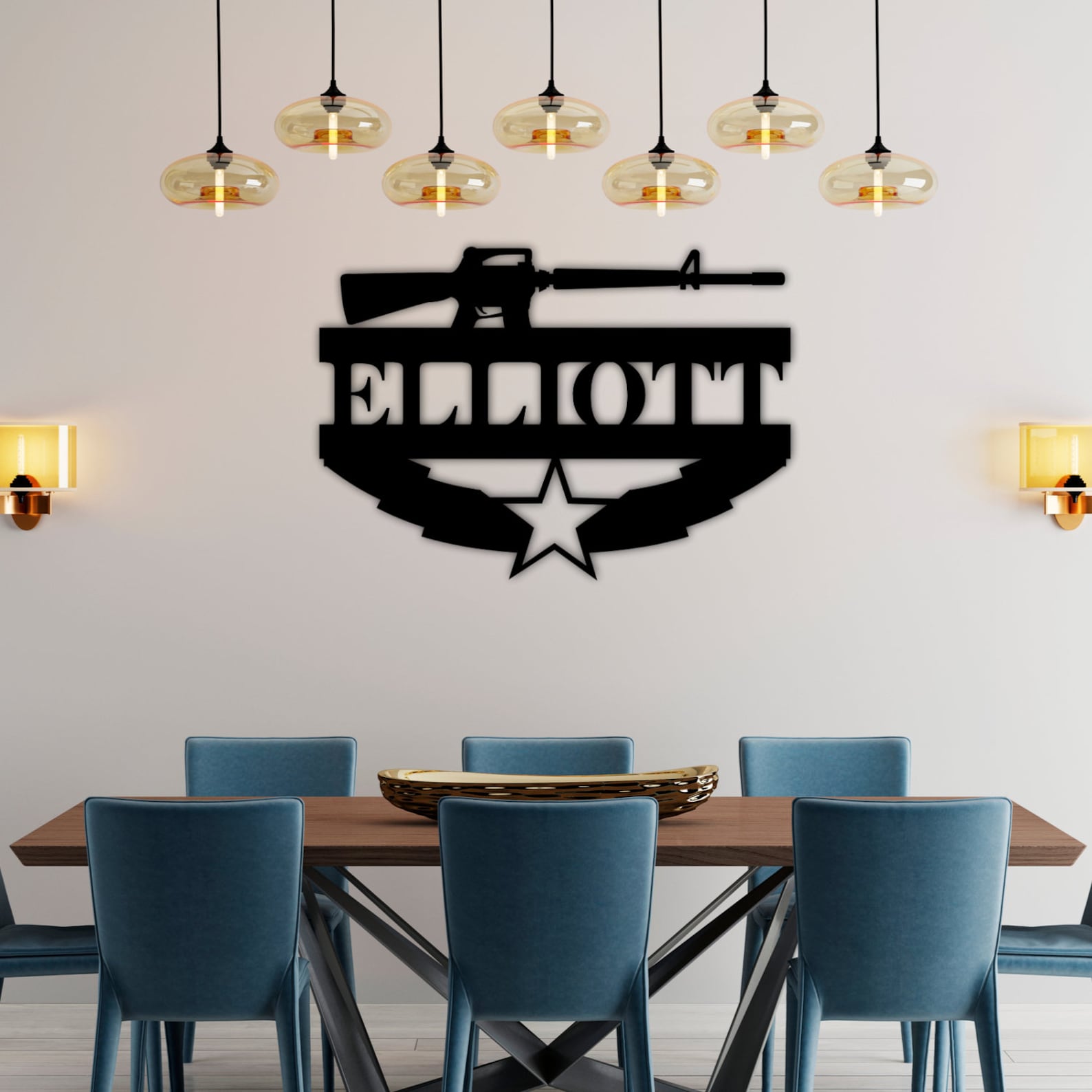 Custom Metal Sign: Personalized Last Name & Gun Sign