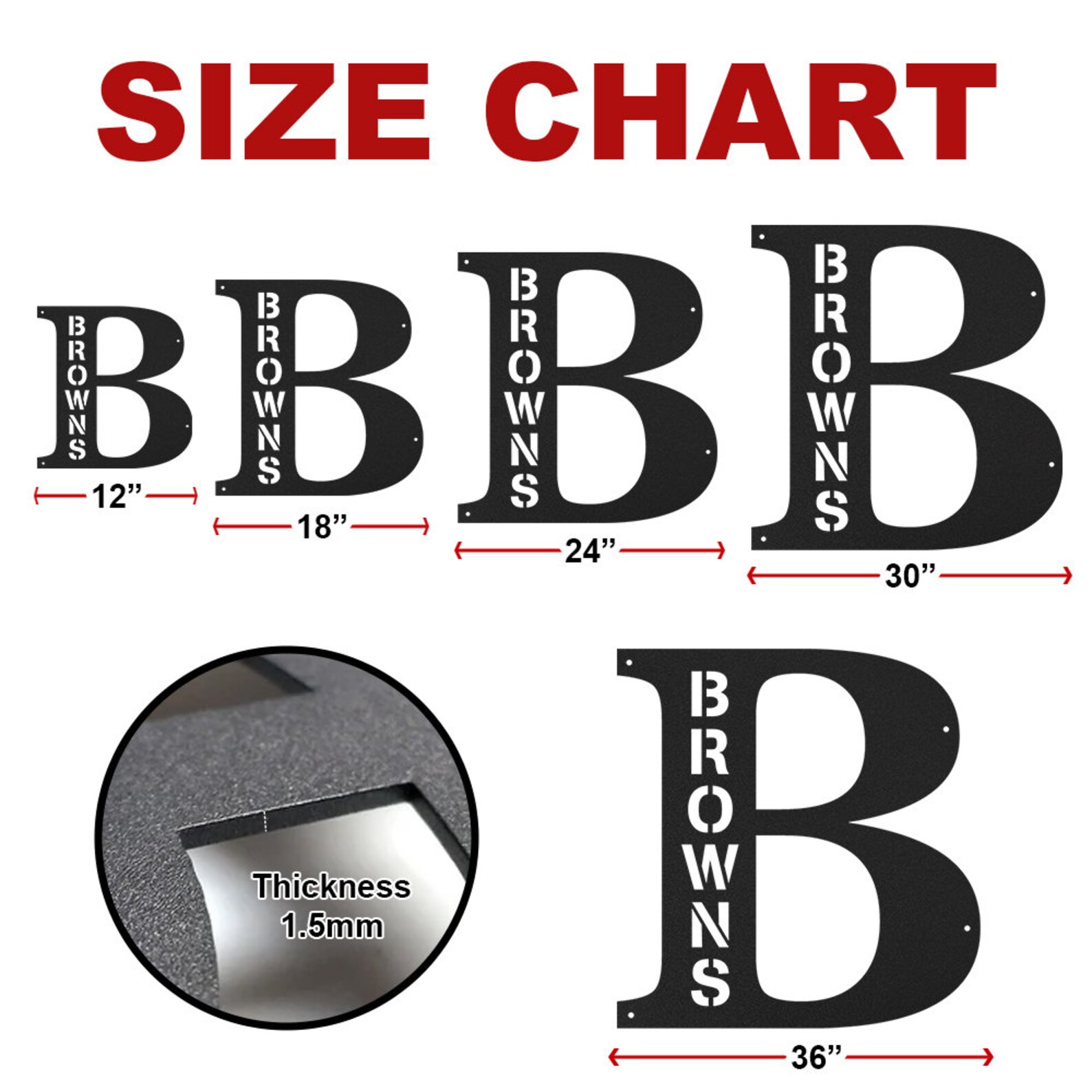 INDOOR or OUTDOOR DECOR — Upgrade your garage, shed or beautify the walls with this metal name signs. This customized metal sign can be used for workshop, garage, tool shed and more. Display your familys initials in or around your home. There are six sizes of signs for you to choose, you can choose the proper size according to the hanging position.