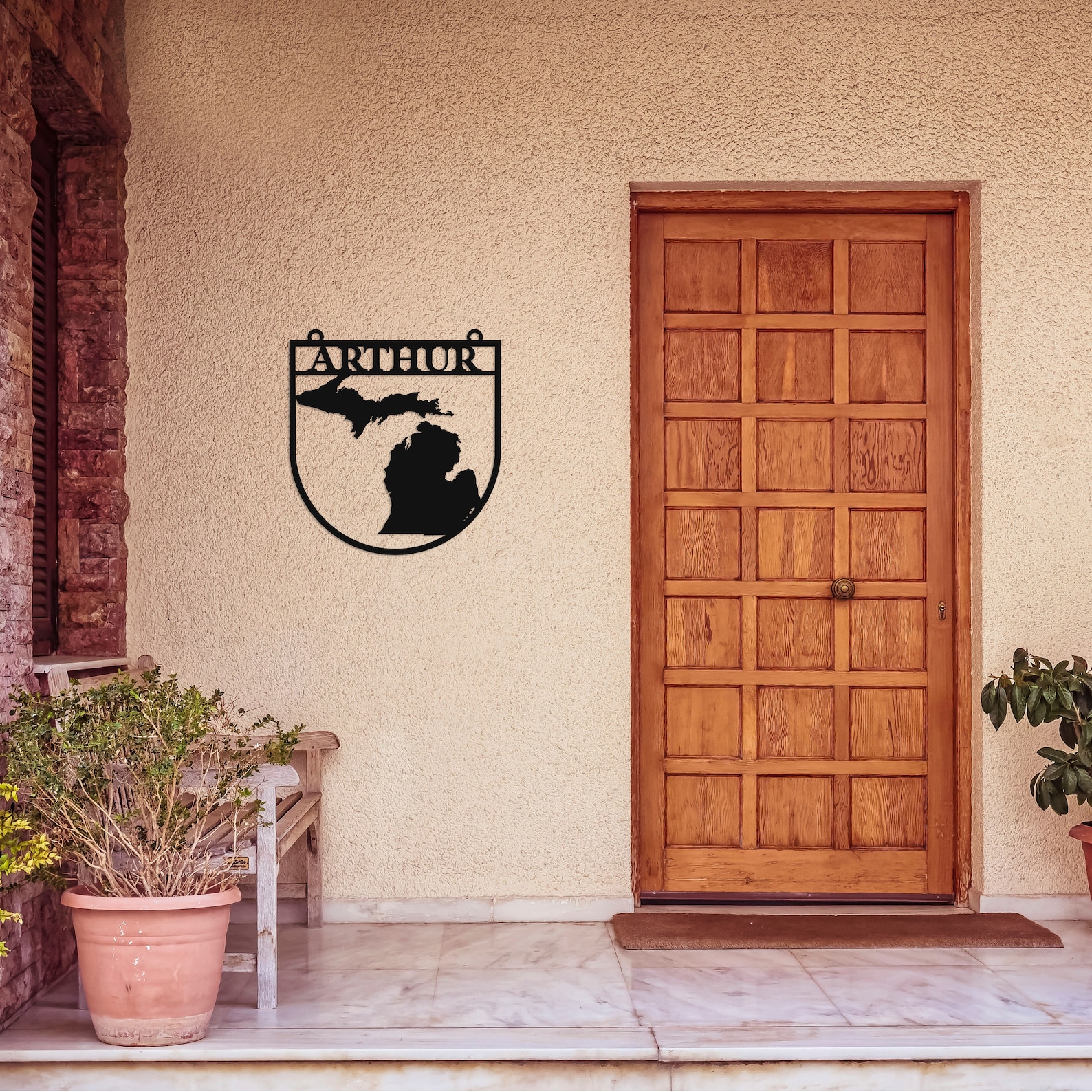 Elevate your home9;s exterior with our "Michigan, MI, State, Custom Metal Sign." Crafted with a passion for Michigan enthusiasts, this personalized metal sign showcases your family9;s name and house number with Michigan pride. It9;s a unique way to add a personal touch to your outdoor wall decor.