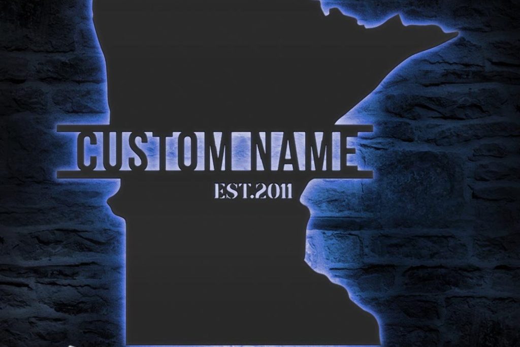 Be the first to review “Custom Minnesota Map Metal Wall Art with LED Light, Personalized Name Sign”