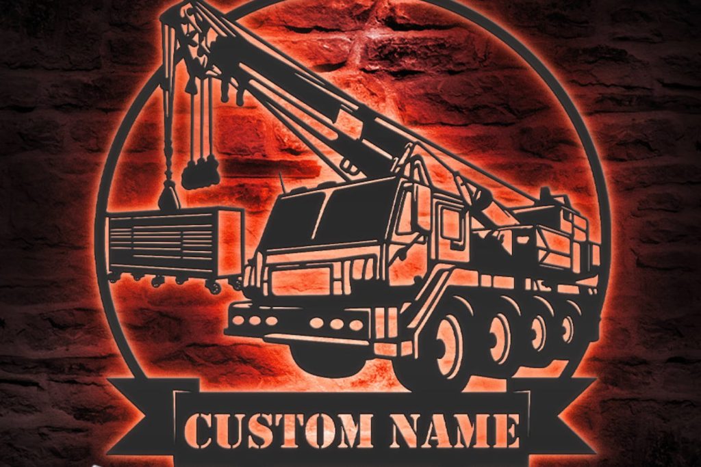 Be the first to review “Custom Mobile Crane Metal Art with LED & Driver Name”