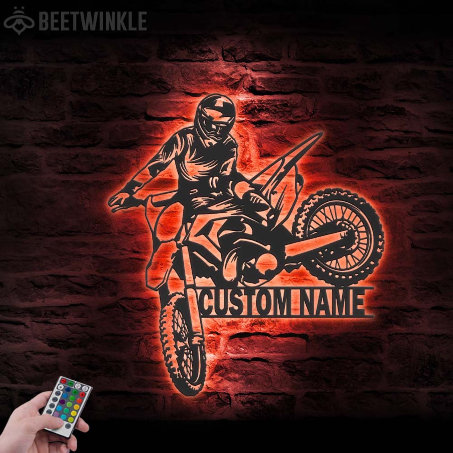 Be the first to review “Custom Motocross Biker Metal Wall Art – LED Lights, Personalized Sign”