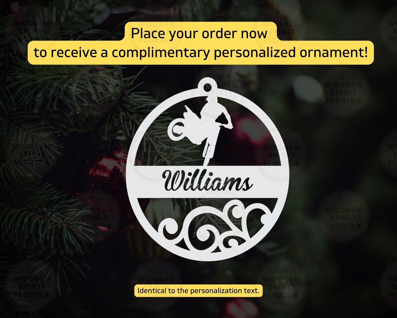 Complement your purchase with a FREE ornament, tailored to match the personalized text of your order.