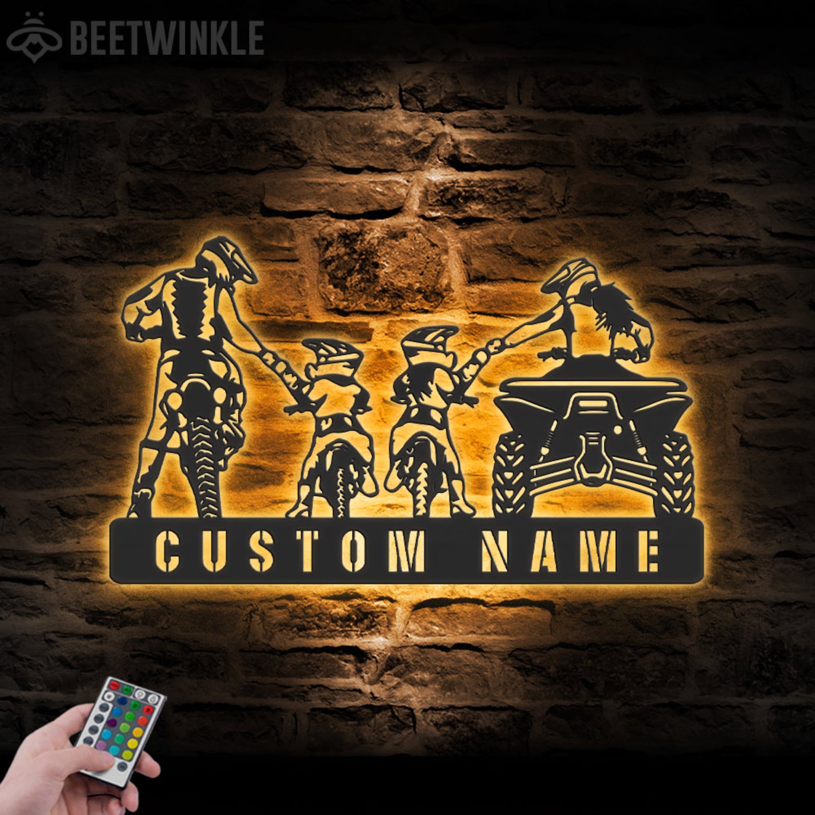 Custom Motocross Motorcycle Metal Wall Art – LED Light, Personalized Sign