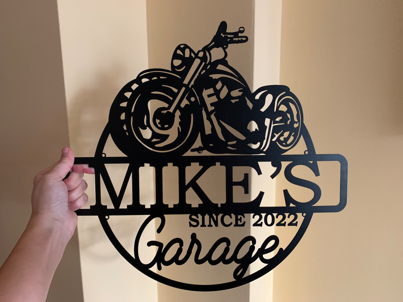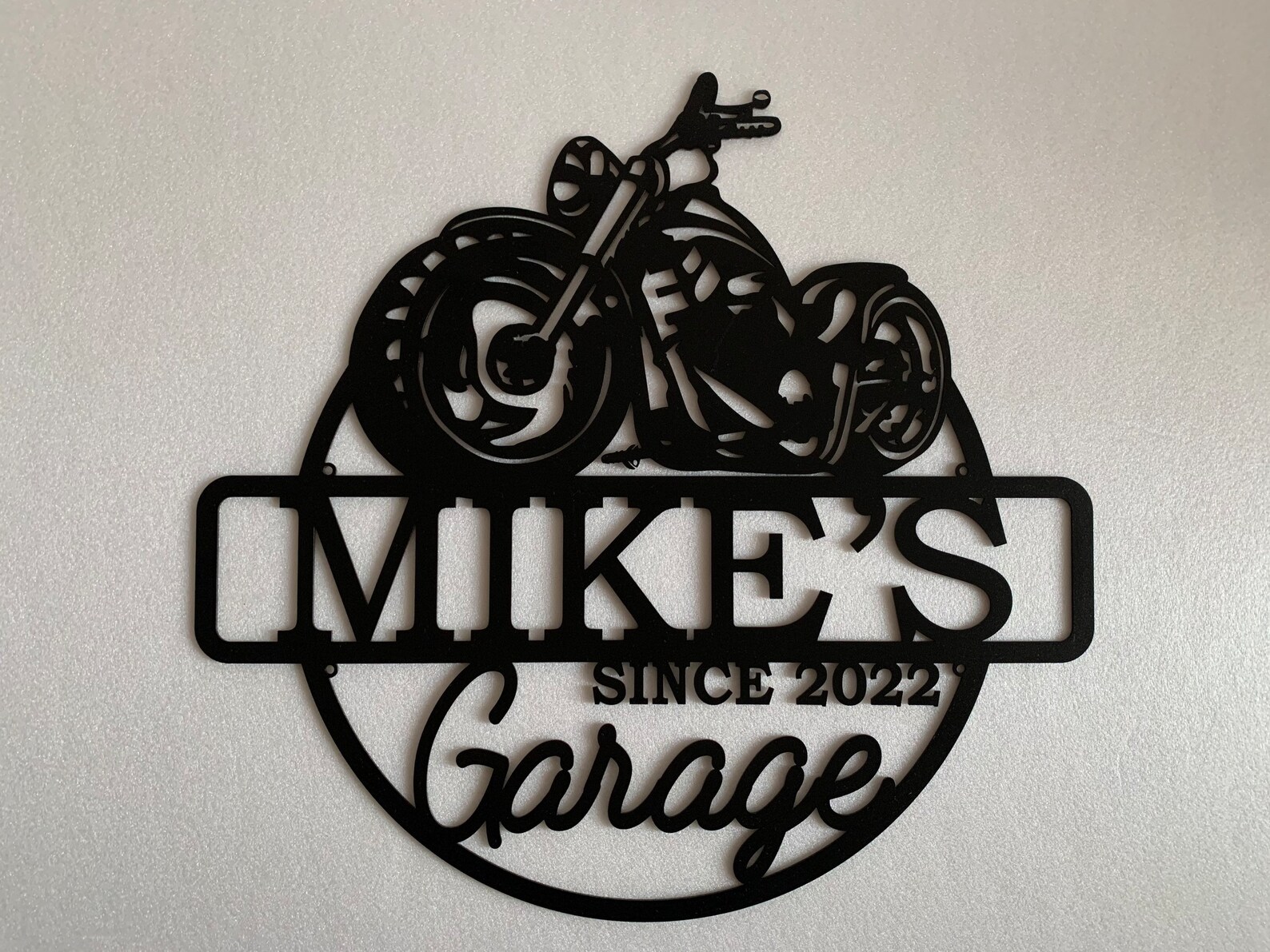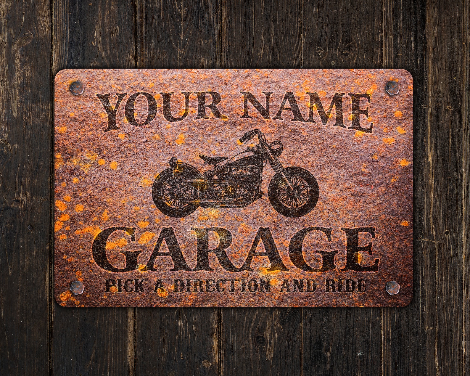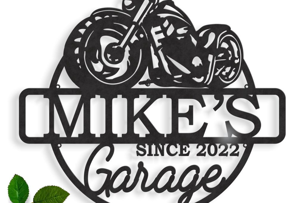 Custom Motorcycle Garage Sign – Personalized Name Metal Plaque
