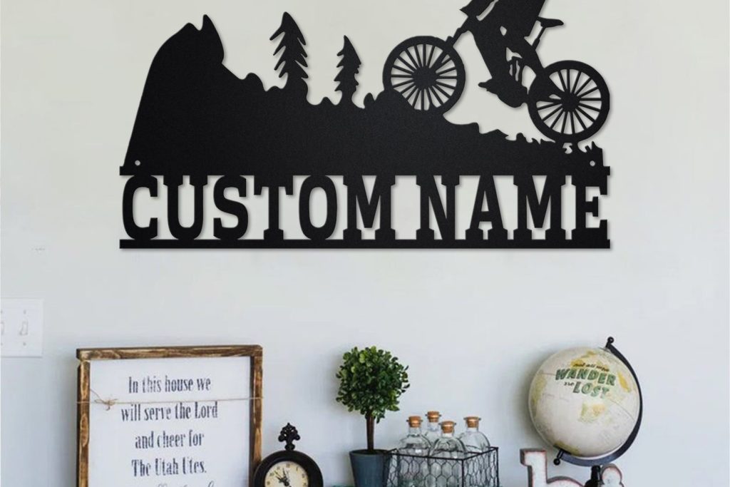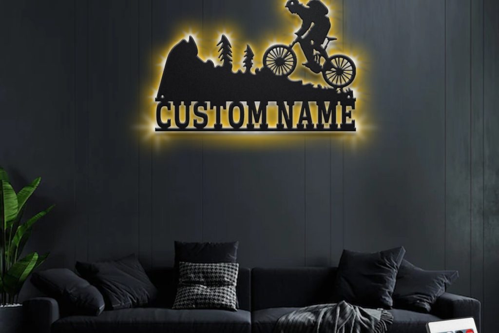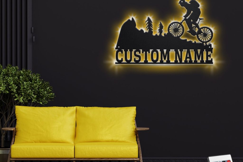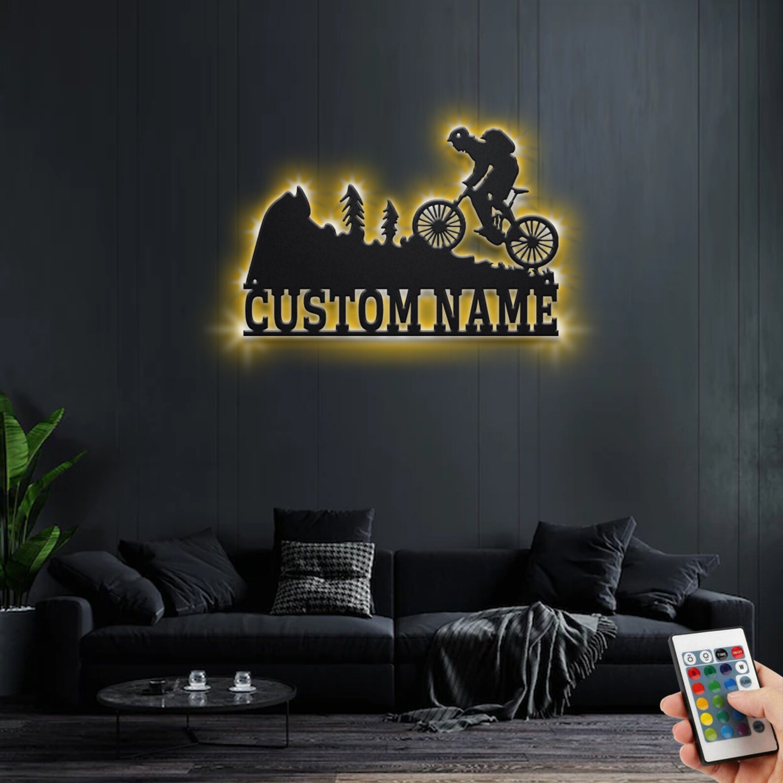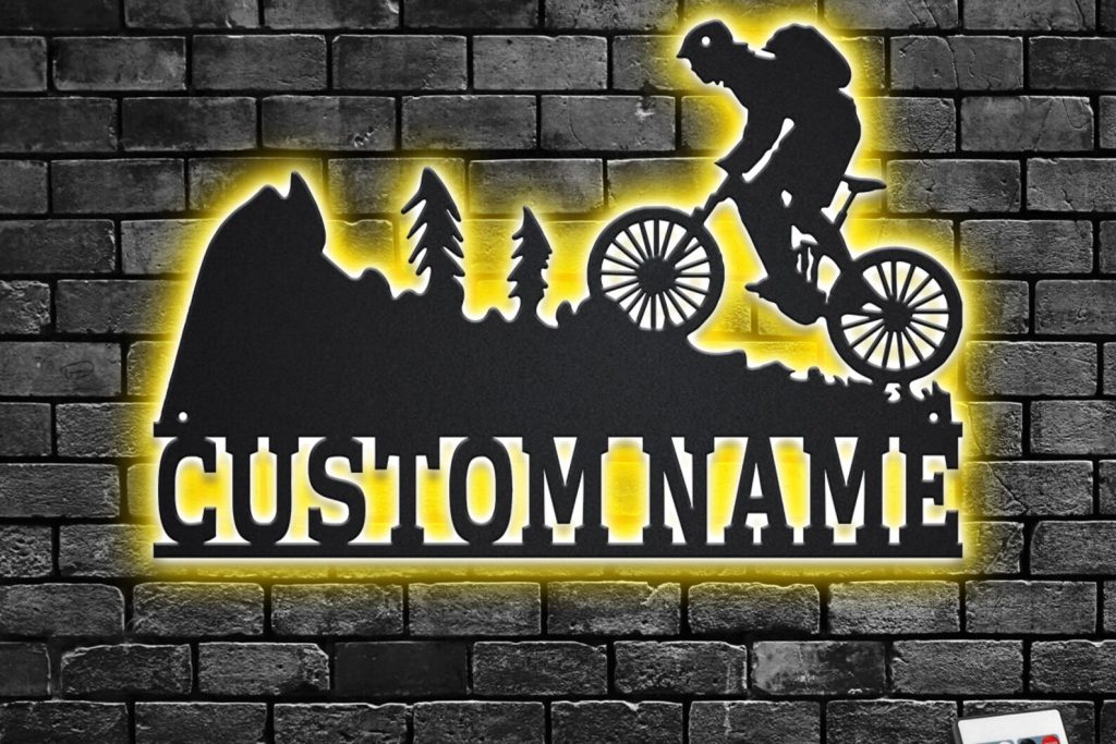 Custom Mountain Bike Metal Sign with LED – Room Decoration