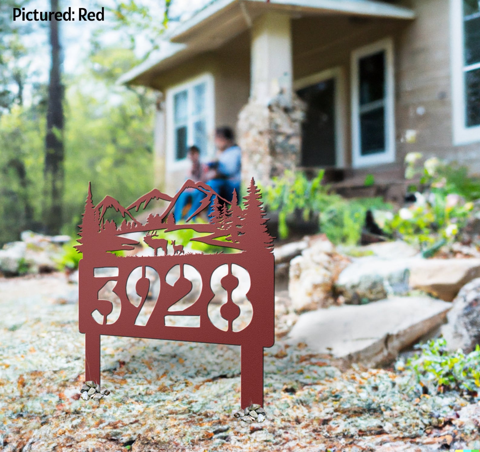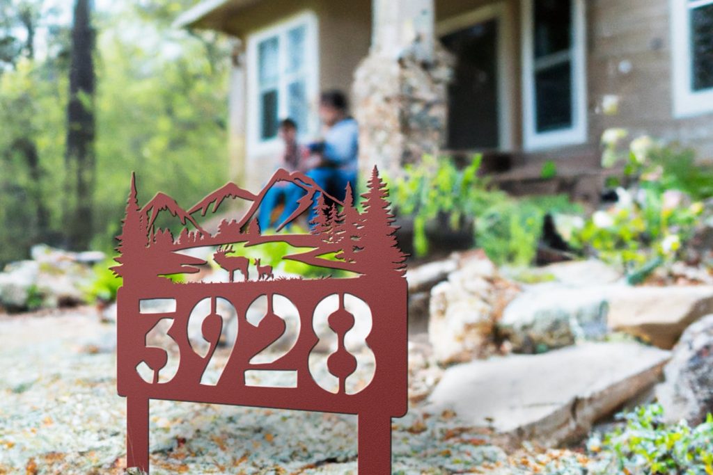 Custom Address SigntMountain Cabin SigntMetal House NumbertHouse Number SigntSign for YardtGround with StakestElk Deer MoosetMountain HousetLarge Lawn DecortStreet Number Signsthousewarming giftstairbnb decorationtski vacation home