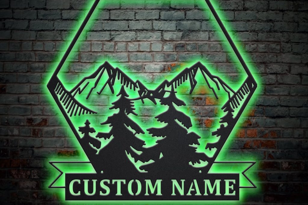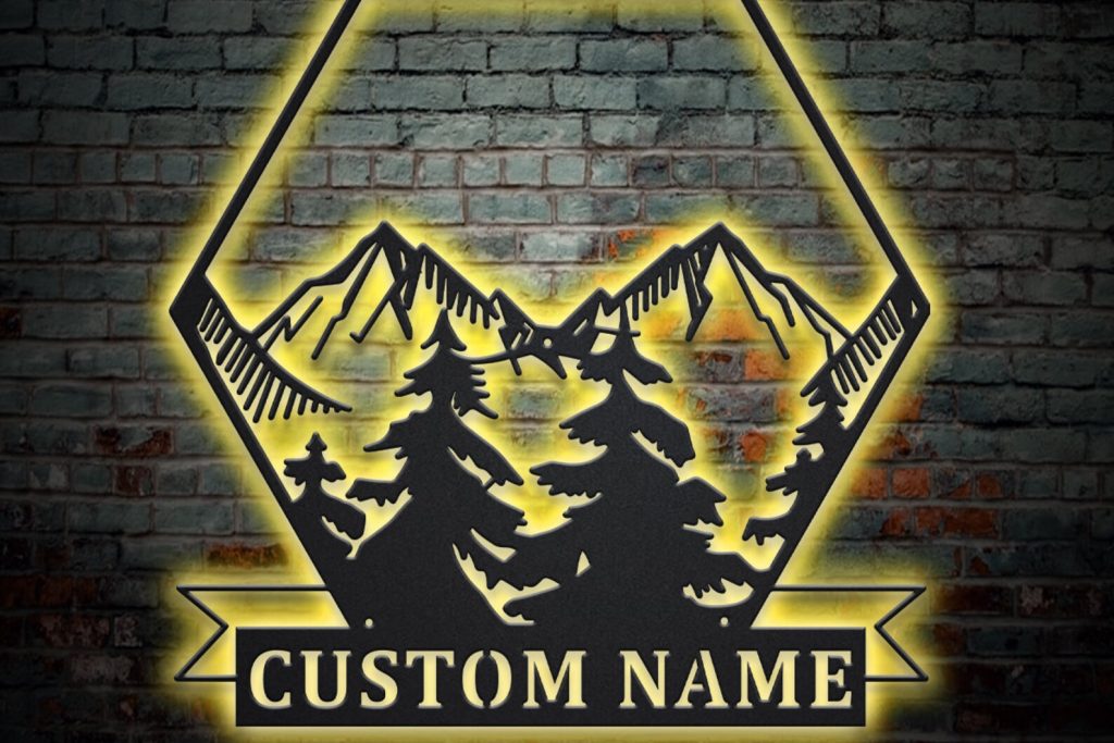 Be the first to review “Custom Mountains Metal Sign with LED V9 – Wall Decor”
