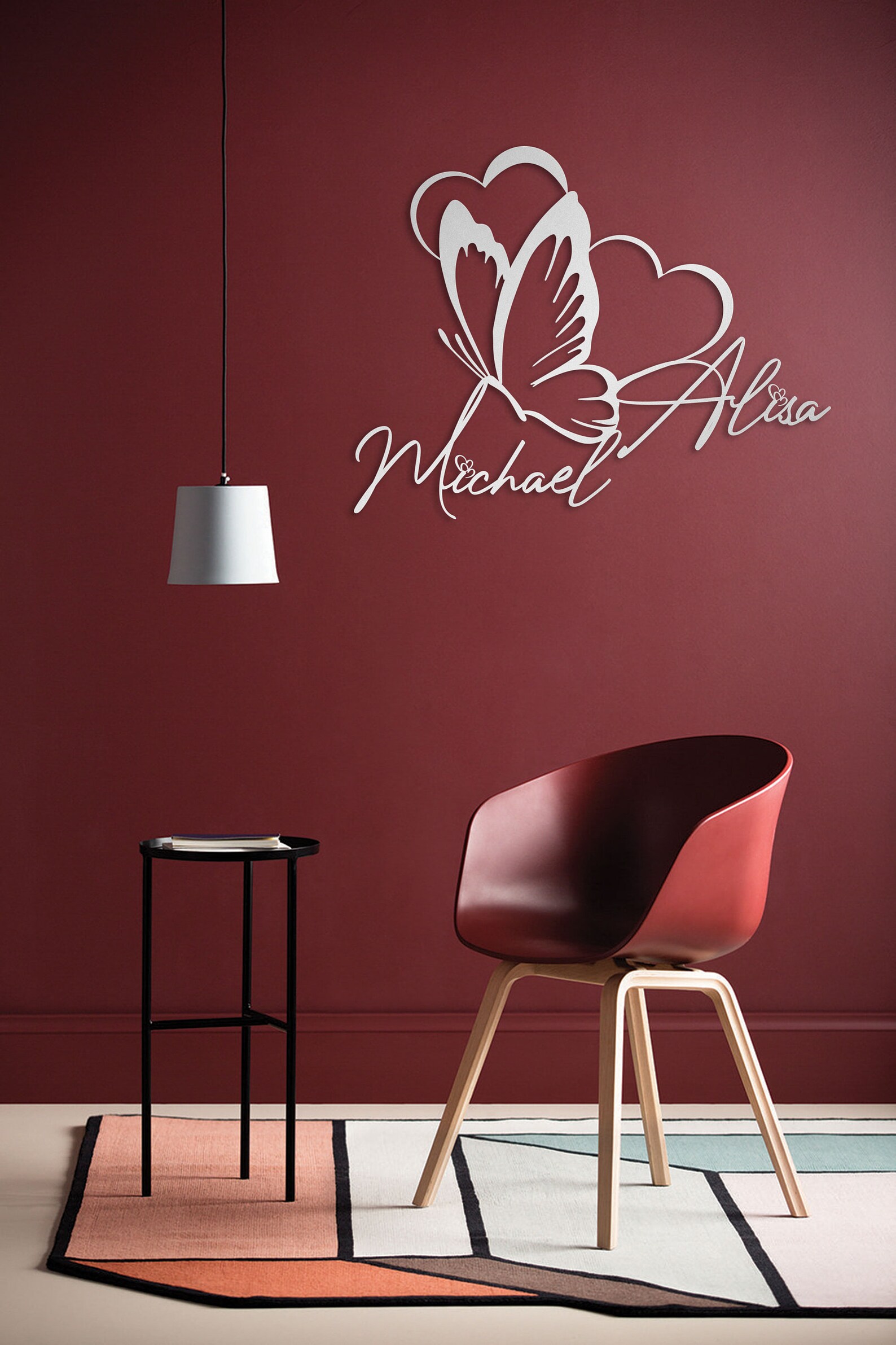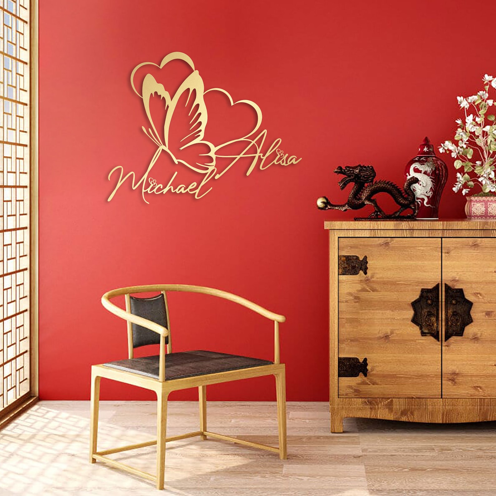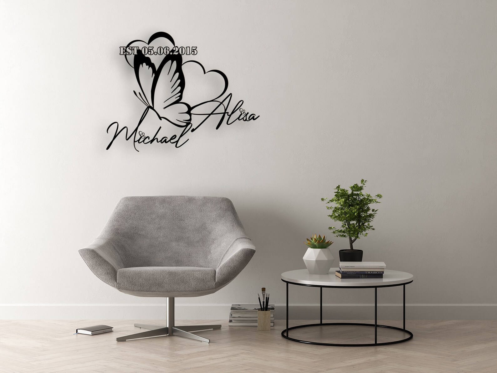 Metal Customized Names and Date Sign , Heart and Butterfly, Custom Metal Wall Art, Home Decoration, Wedding, New Home ,Housewarming Gift