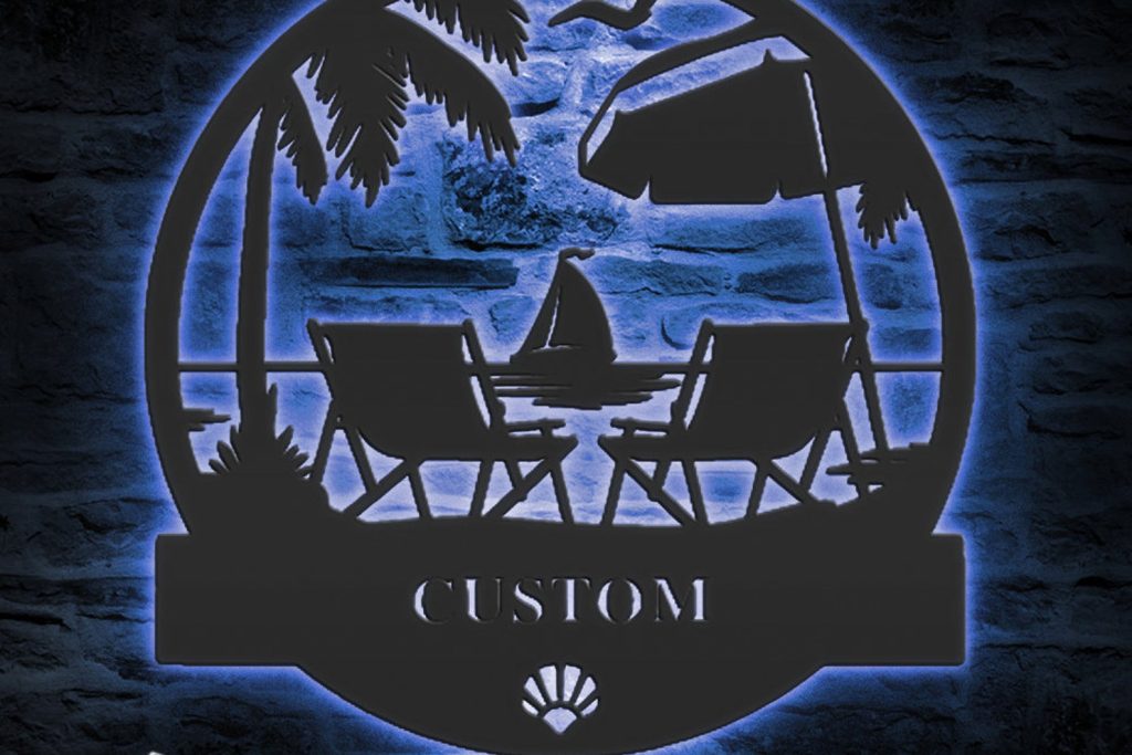 Be the first to review “Custom Nautical Beach House Metal Art with LED Light”