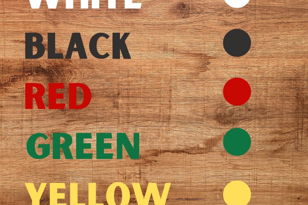 Black, White, Yellow, Red and Green