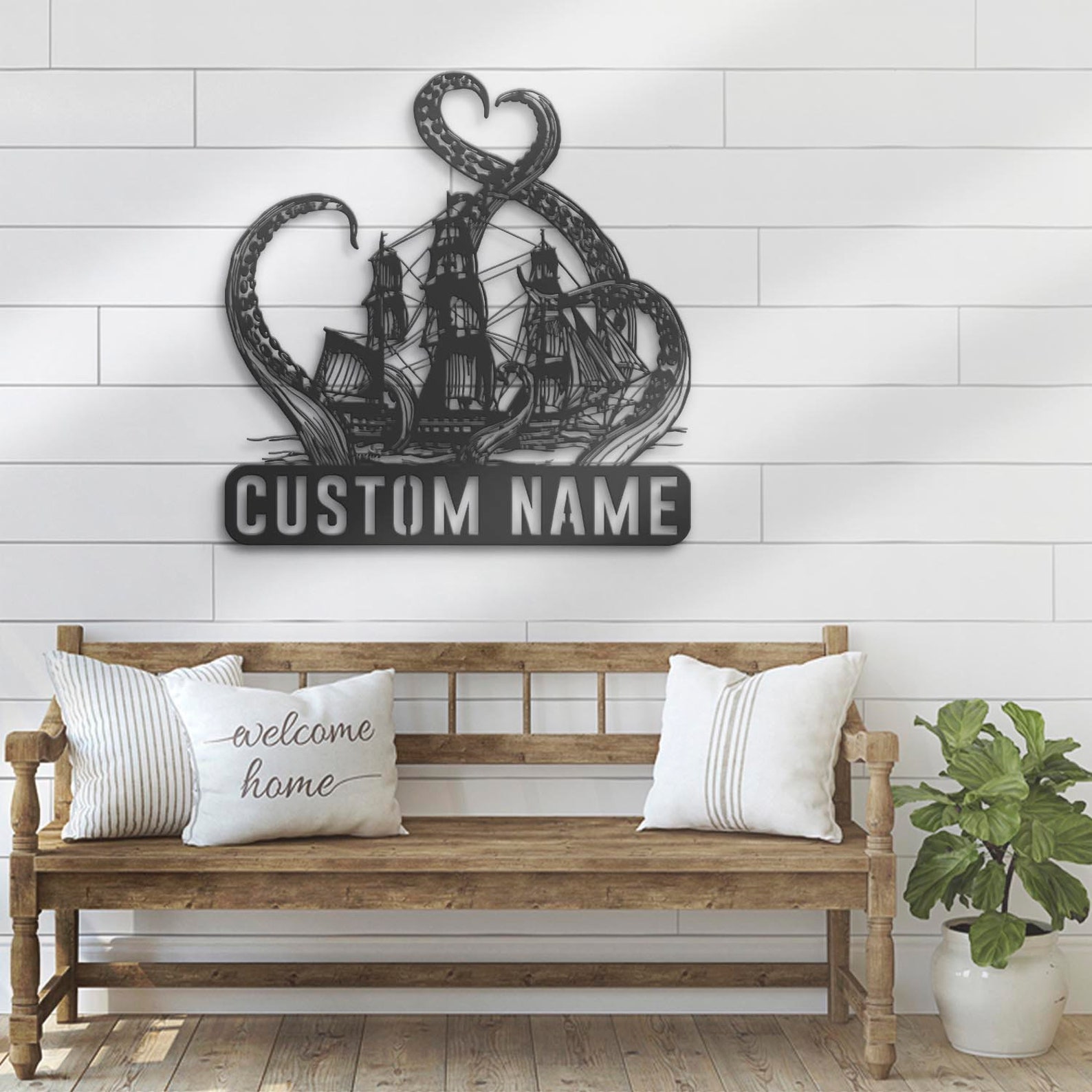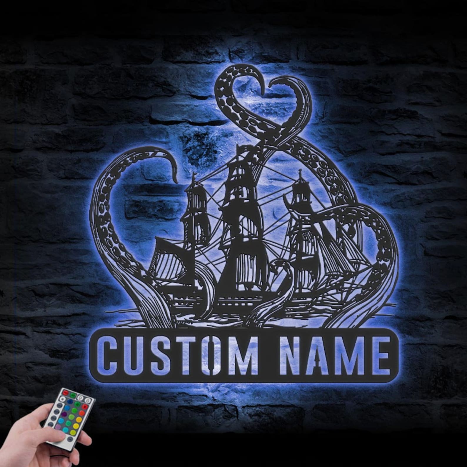 Be the first to review “Custom Octopus Ship Metal Art with LED & Name”