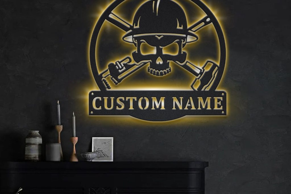 Be the first to review “Custom Oil Field Skull Metal Sign with LED – Roughneck Decor”