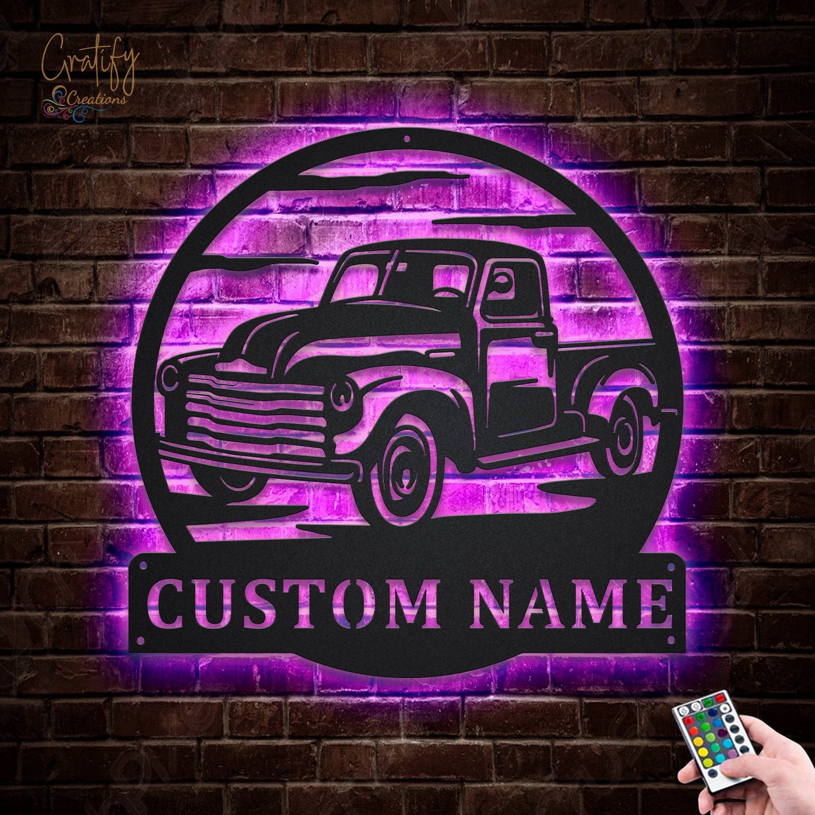 Be the first to review “Custom Old Truck Metal Art with LED Light”