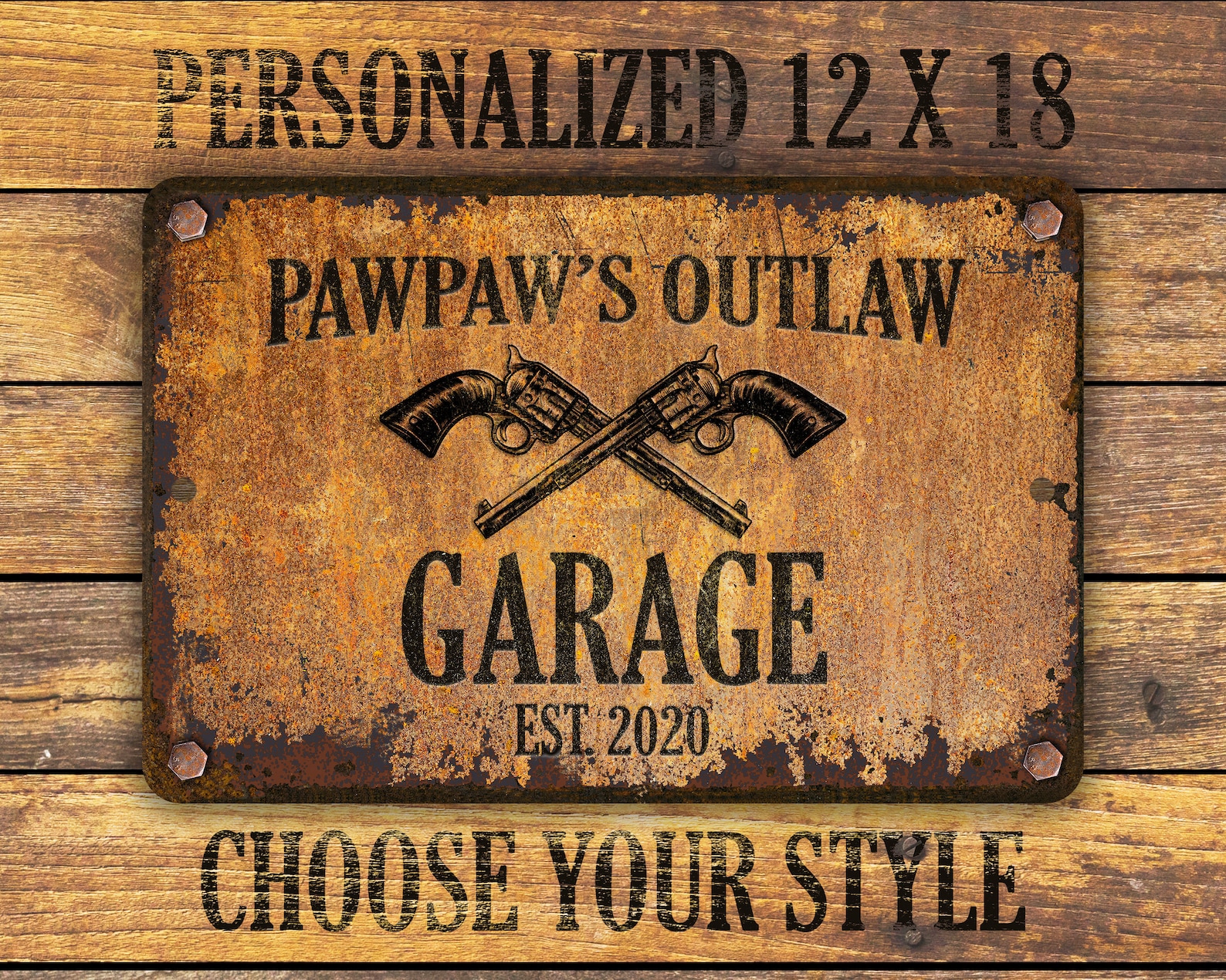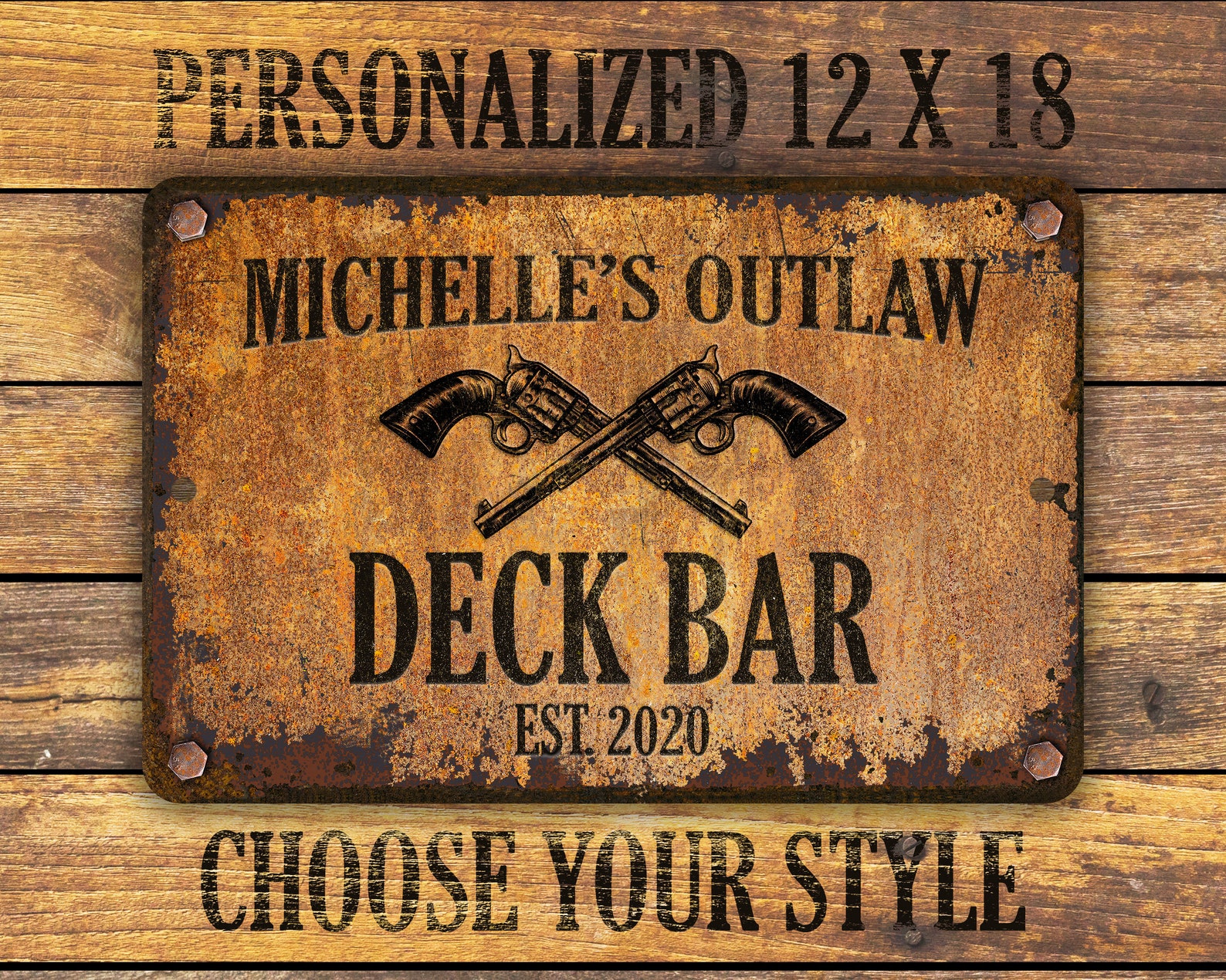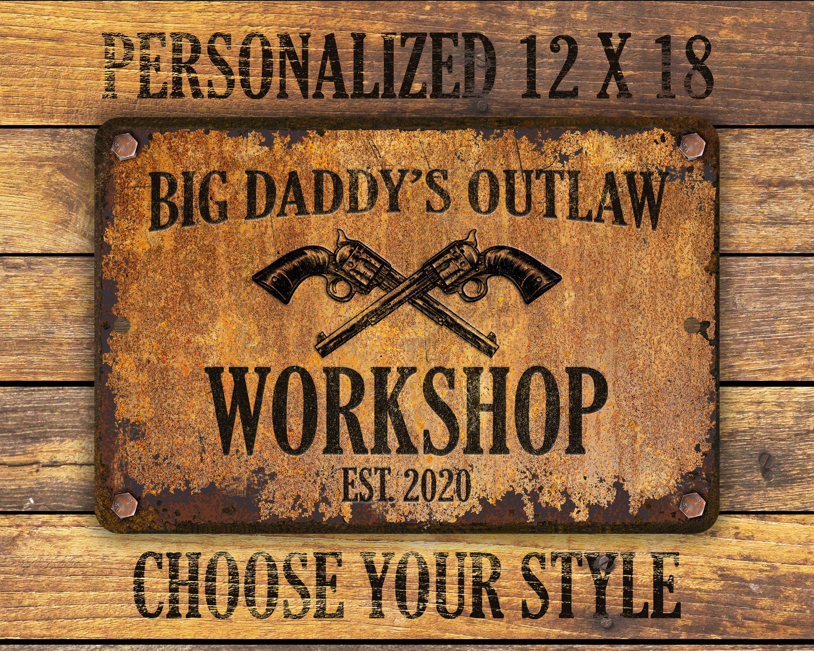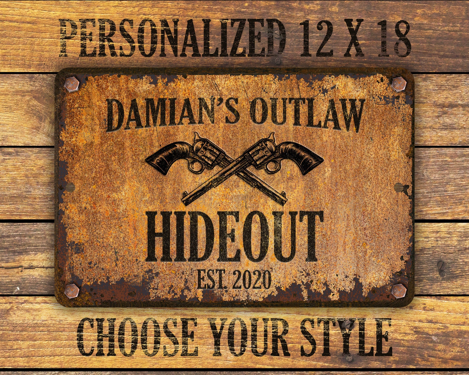 Custom rusty appearance outlaw-themed metal sign | Perfect gift for anyone who needs their own special sign with vintage appeal | Customize this sign with first name, family name, bar or shop name | Includes plenty of options to tailor the sign to commemorate your special place.
