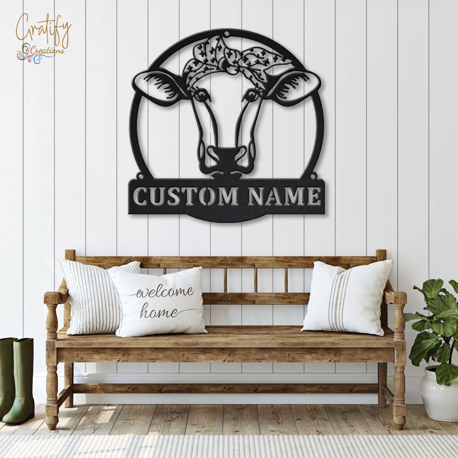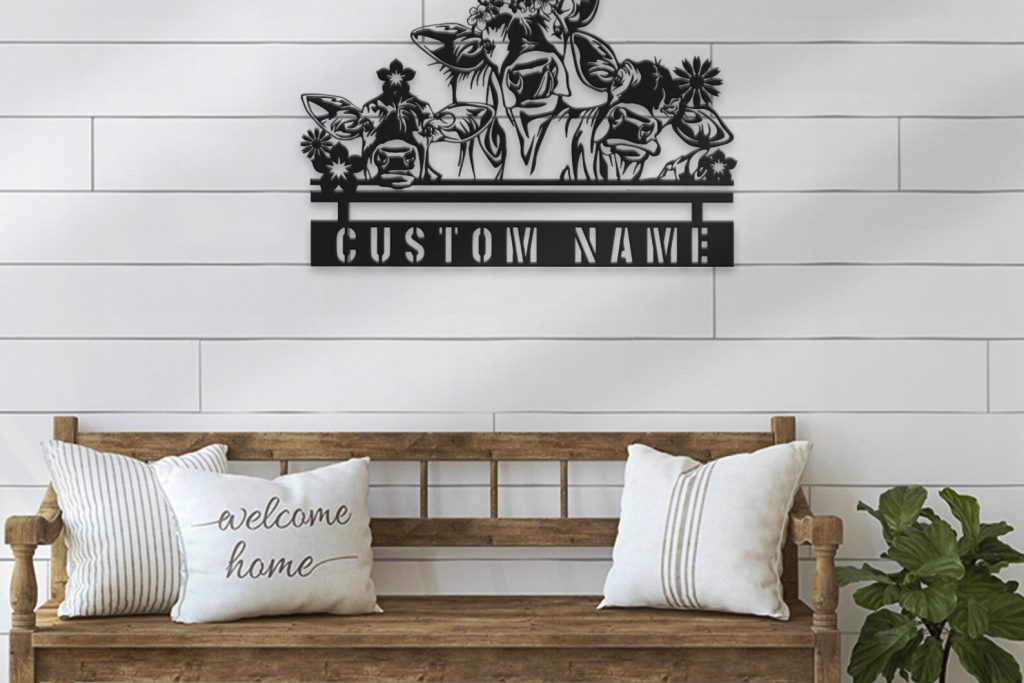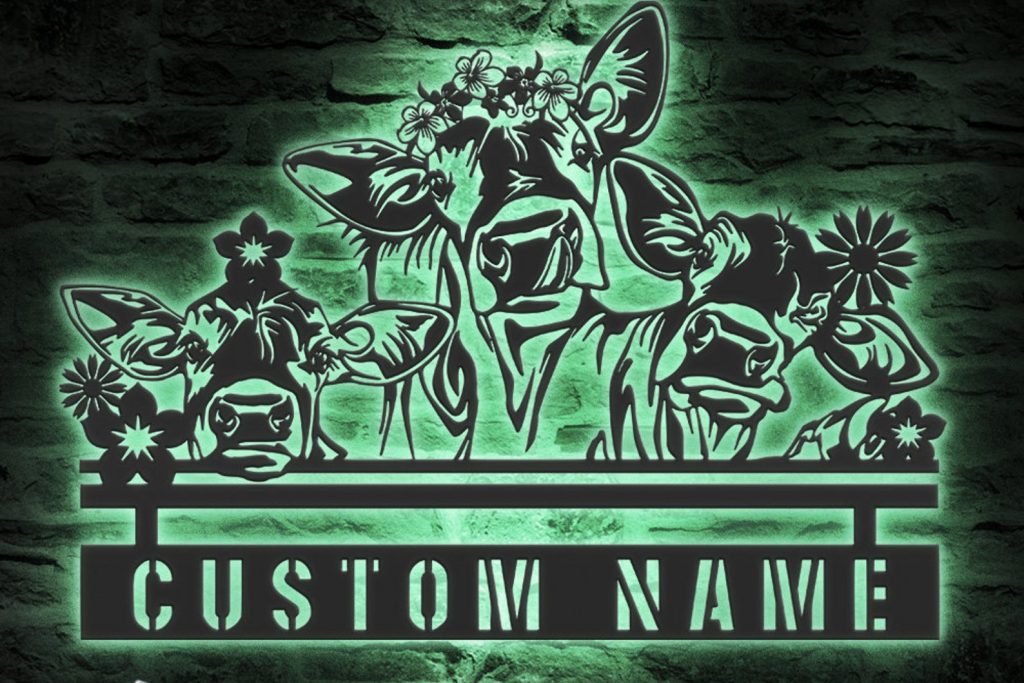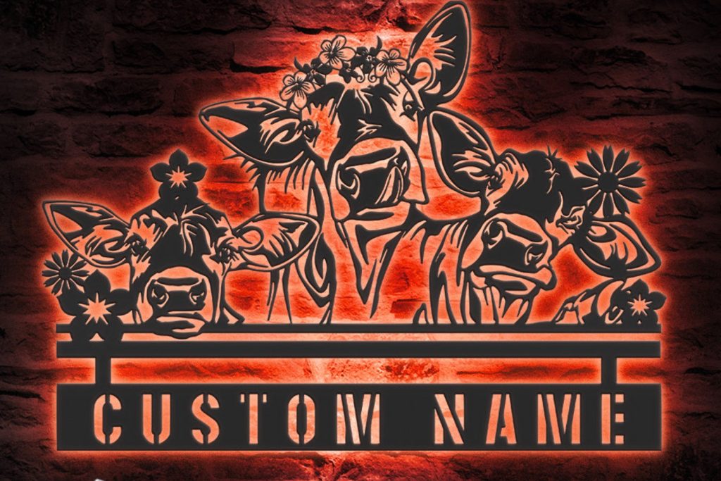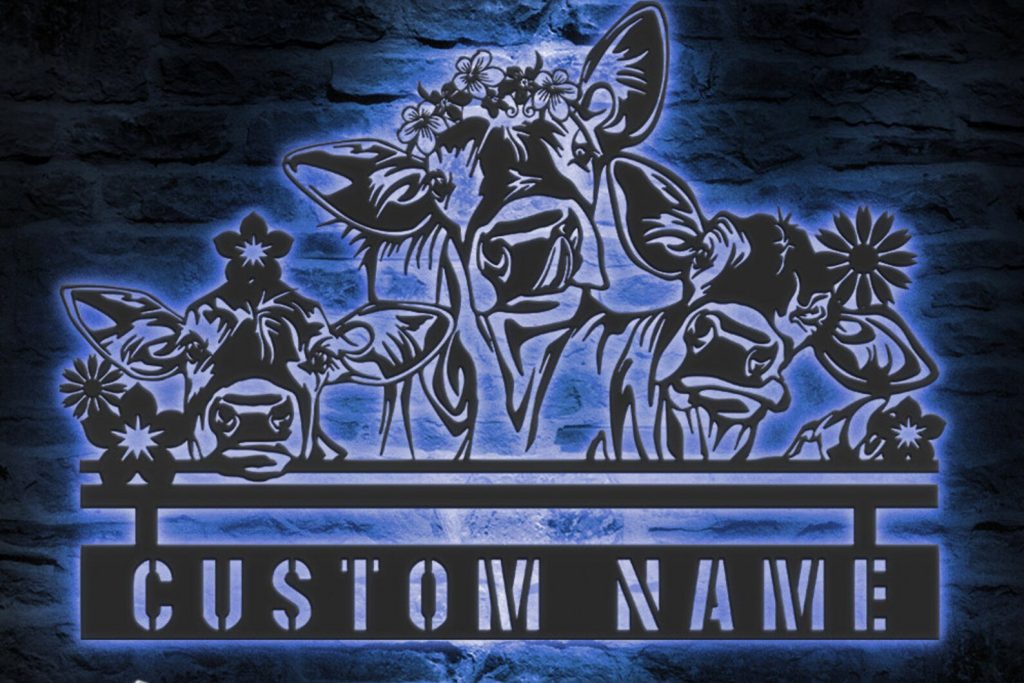 Be the first to review “Custom Peeking Cow Metal Sign with LED – Nursery Decor”