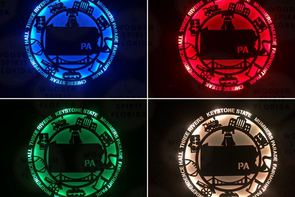 Wood: Crafted using a black mdf wood combined with a blurred acrylic sheet, this design offers a rustic touch reminiscent of Pennsylvania9;s historic towns.