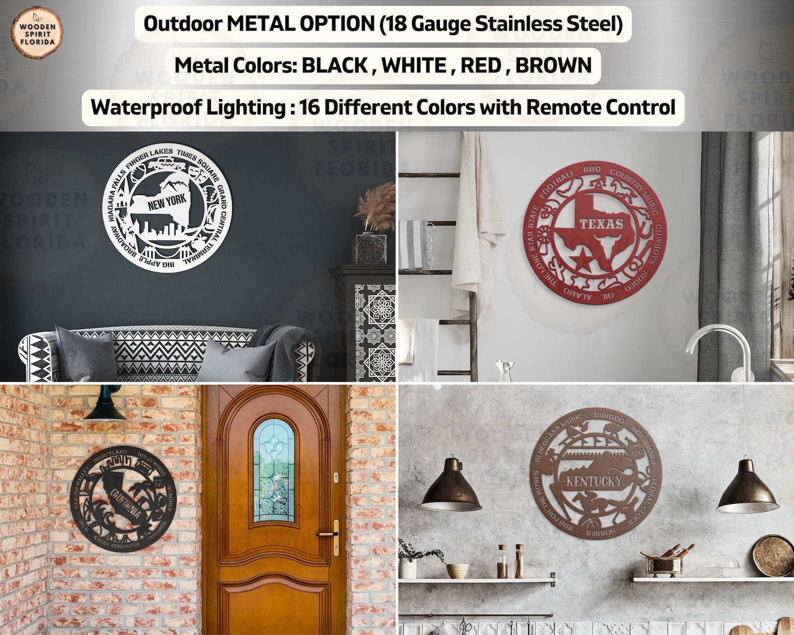 Metal: Perfect for both indoor and outdoor spaces, our metal sign uses 18-gauge stainless steel with an array of color options, protected by powder-coated paint. Its waterproof LED ensures longevity.