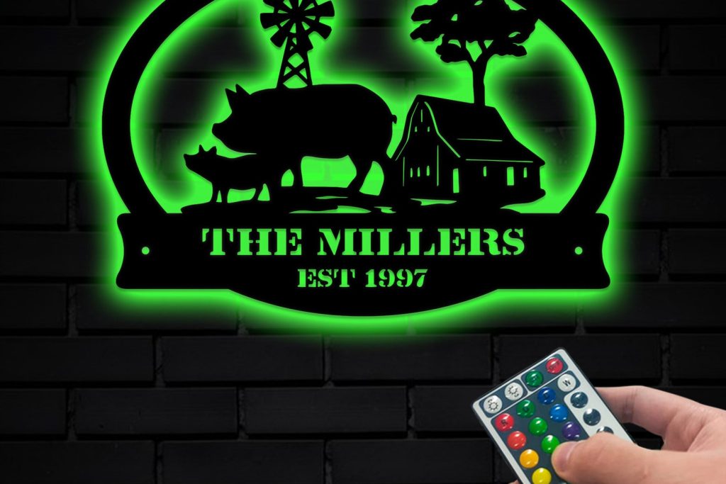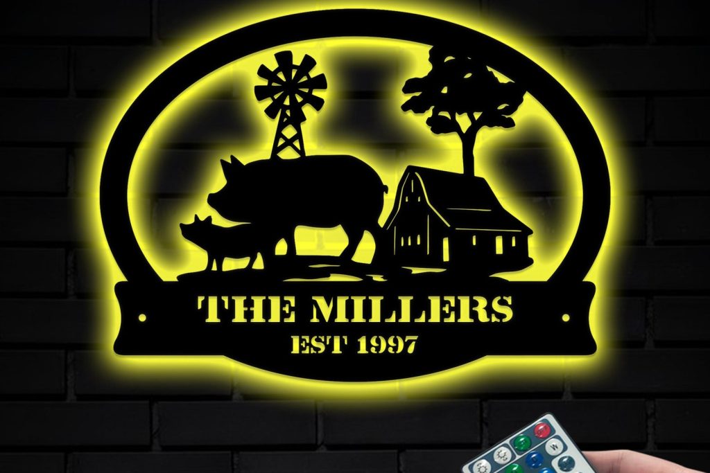 Be the first to review “Custom Pig Farm Metal Sign with LED – Barn Wall Decor”