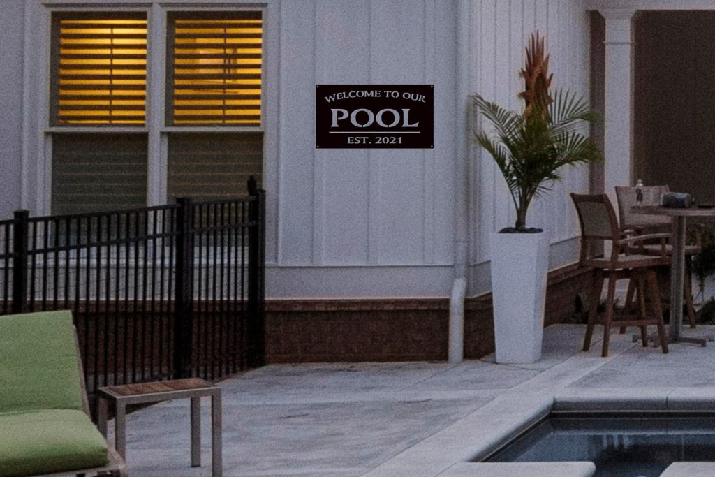 Custom Pool Sign | Welcome to Our Pool Sign with Est. Date | Personalized Outdoor Metal Sign | Housewarming Gift | Backyard Decor