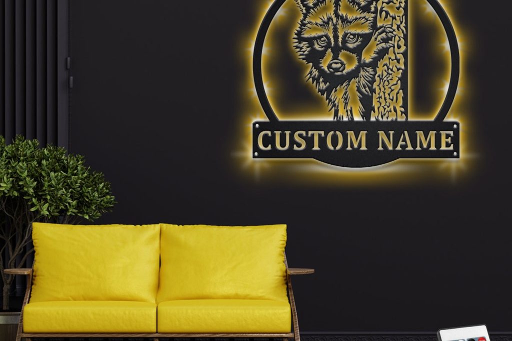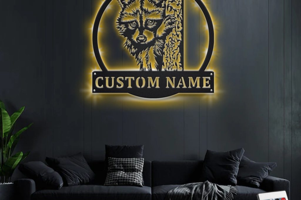 Be the first to review “Custom Raccoon Metal Wall Art with LED Light, Personalized Name Sign”