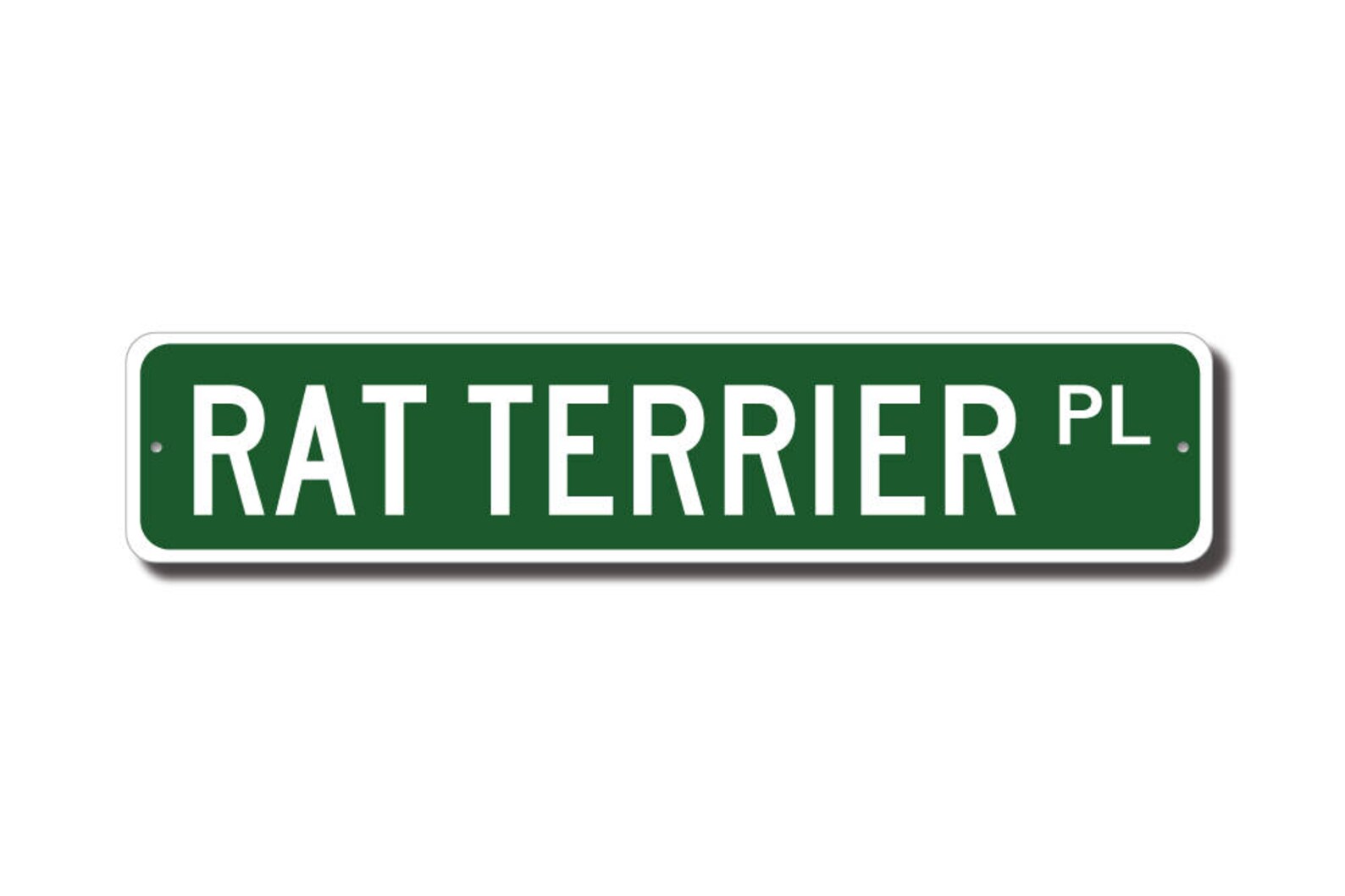 Rat Terrier lovers check out this awesome street sign! This will make the perfect piece for any Rat Terrier lover or Rat Terrier cave. Made of premium aluminum it will stand the test of time. This sign will look great in any room, garage, barn or office! Get this sign for your favorite friend that loves a Rat Terrier !