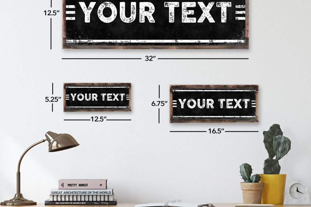1. From the drop down menu under Size," choose your desired sign size: 4" x 12", 6" x 16", or 12" x 31" and whether or not you would like your sign framed (optional) with rustic, reclaimed barn wood.