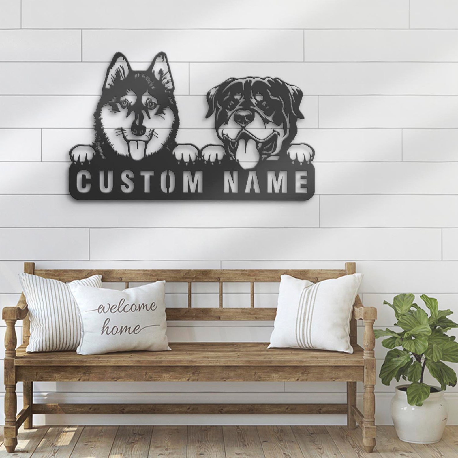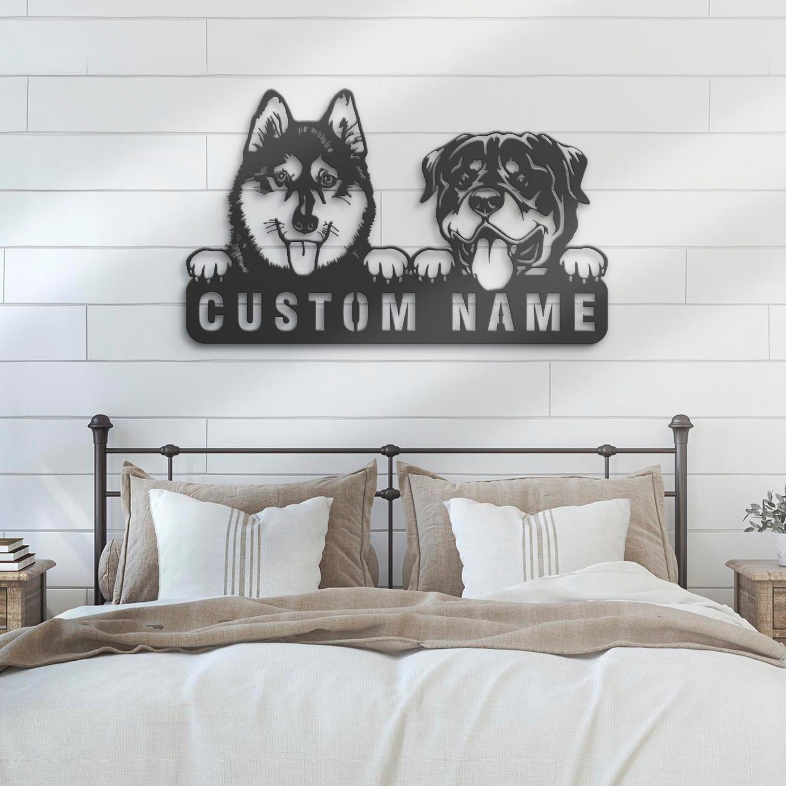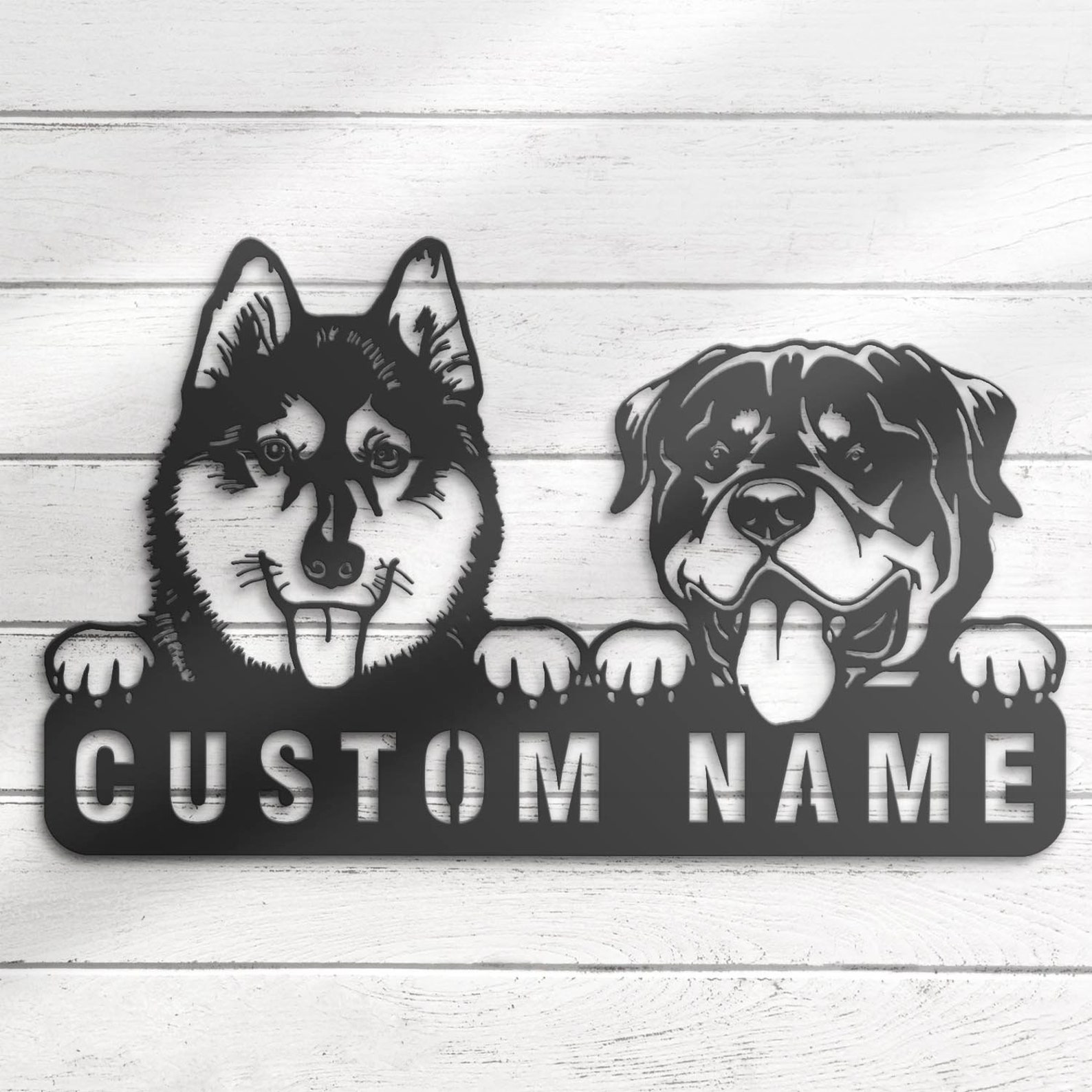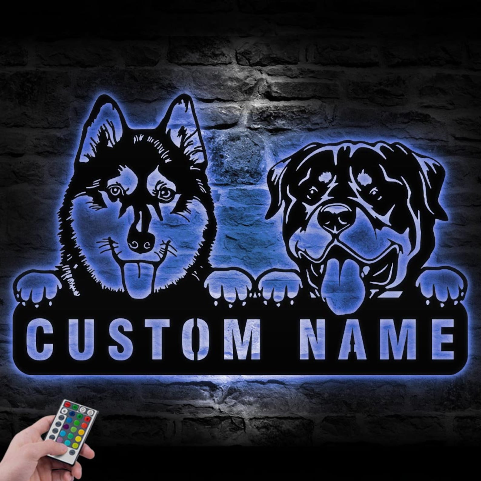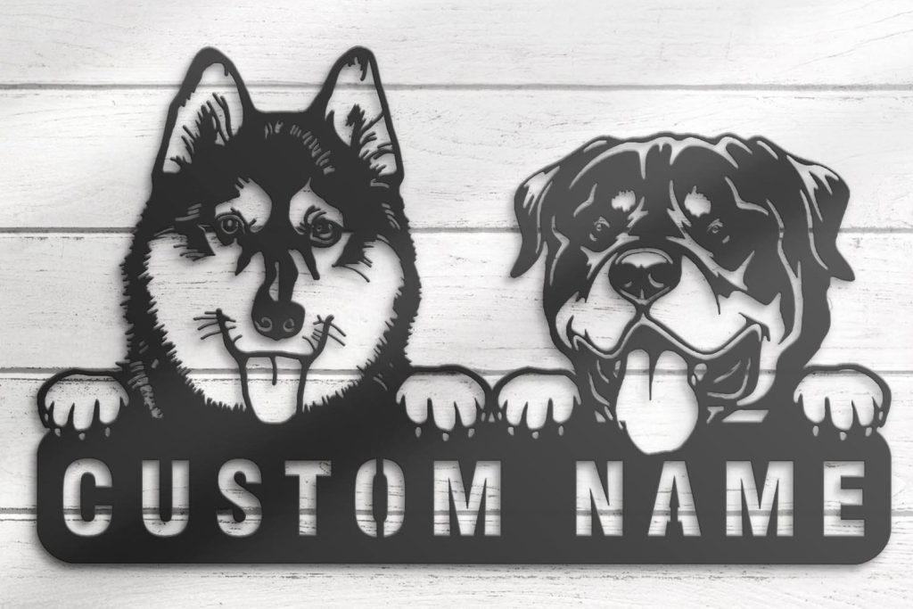 Be the first to review “Custom Rottweiler & Husky Metal Sign with LED – Nursery Decor”