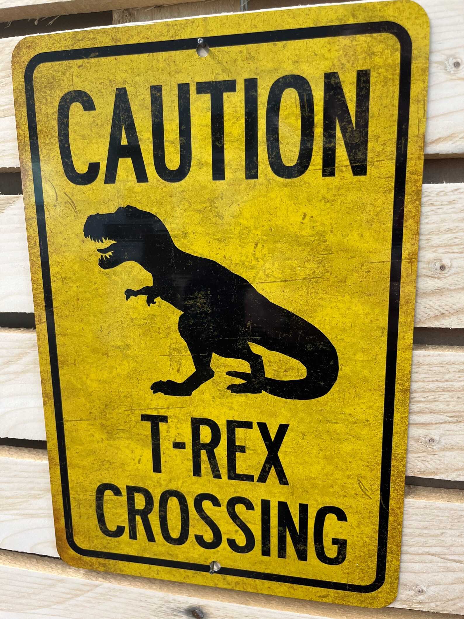 NOTE: These signs are not textured. They are made of metal (not wood or plastic). Any wood grain, knot holes, scratches, rust, or other markings are part of the images used to give the signs their aged appearance. The finish is smooth gloss.