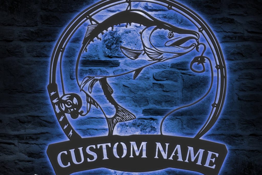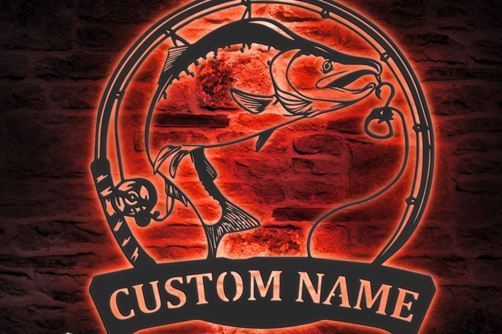 Be the first to review “Custom Salmon Fishing Wall Art with LED – Fisher Name Sign”