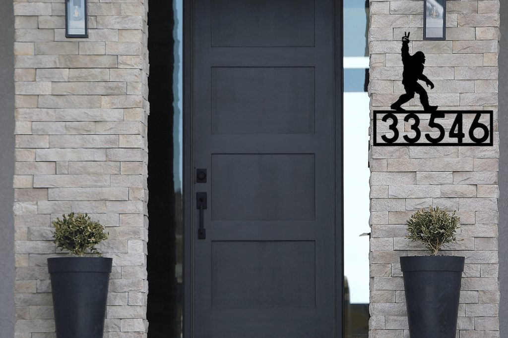 This custom address sign is perfect for adding a unique touch to your home. Its beautiful design features a Sasquatch figure, adding a special rustic charm to your home and making your address visible to visitors. Crafted from durable, weatherproof metal, this sign is designed to withstand the elements and last for years to come. So if you9;re looking for a unique and creative way to display your house number, this sign is the perfect choice!