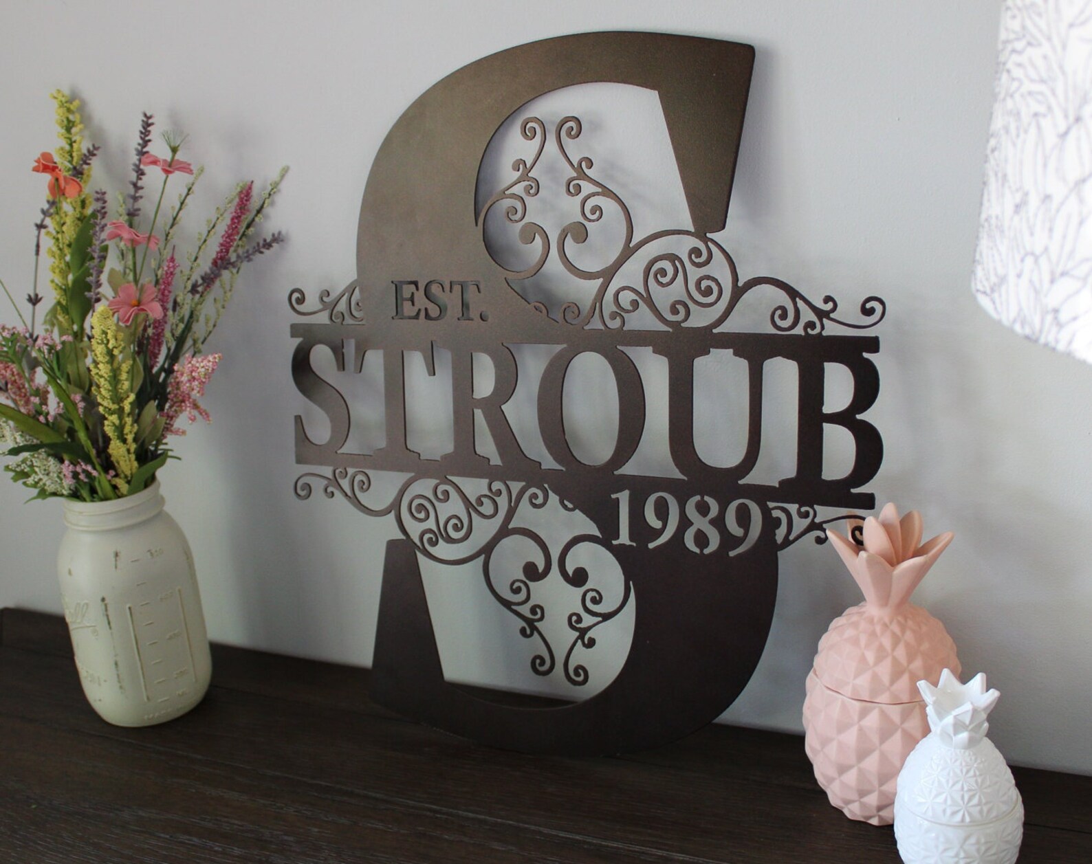 Be the first to review “Custom Scroll Monogram Metal Art with Est. Date”