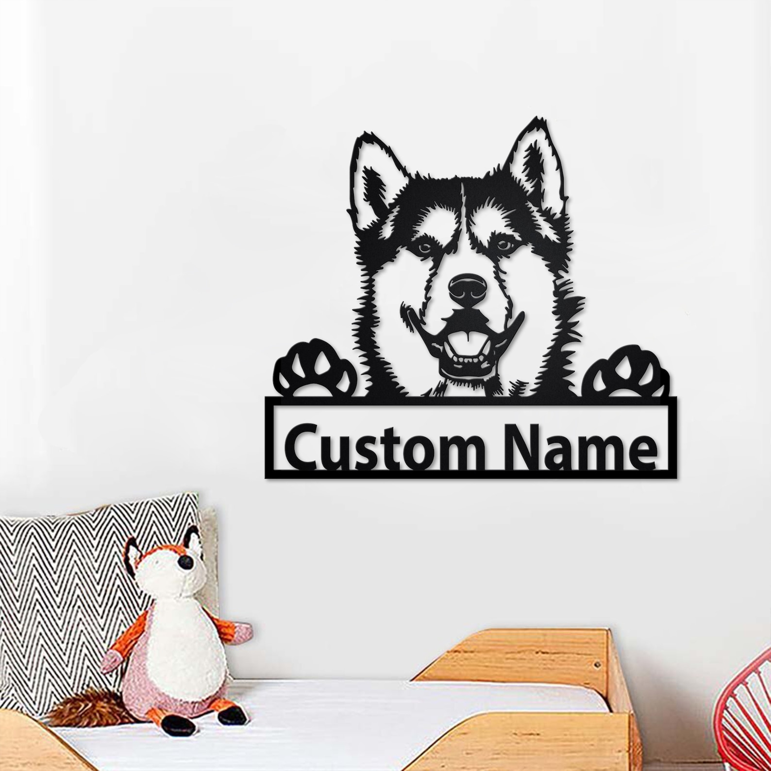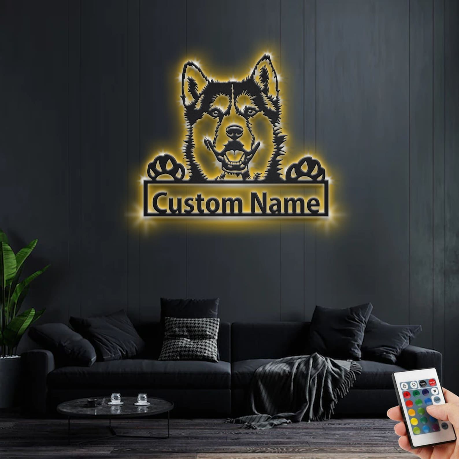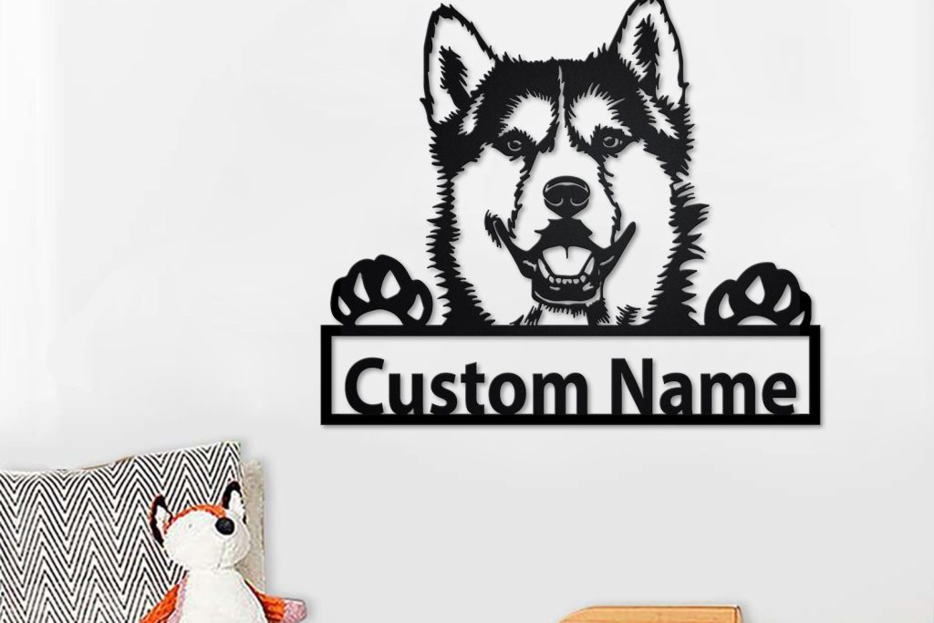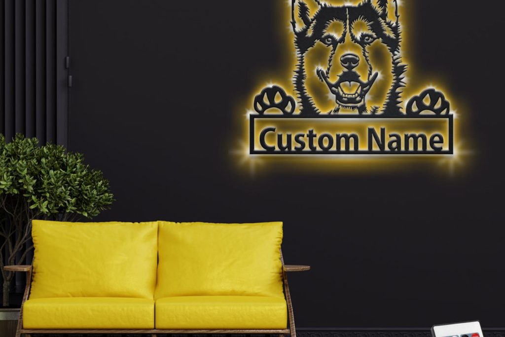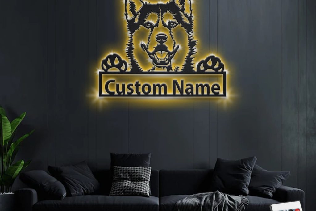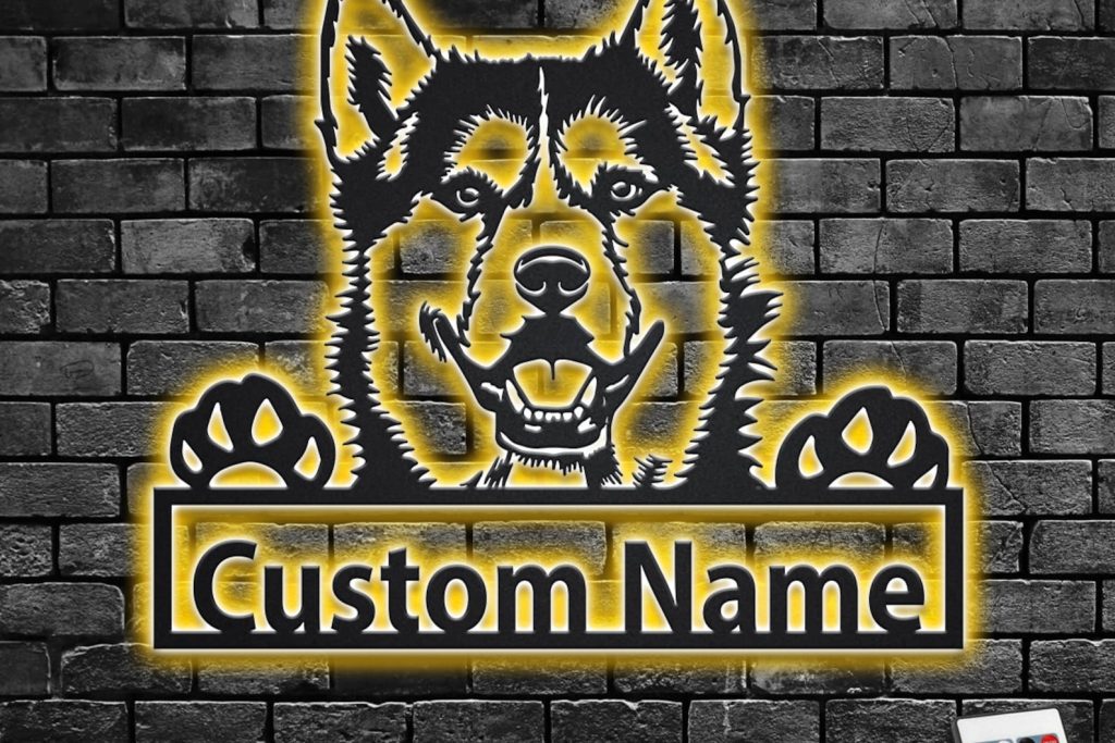 Custom Siberian Husky Metal Wall Art with LED – Personalized Name Sign
