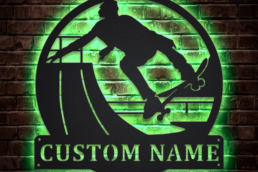 Custom Skateboarding Metal Art with LED Light V6