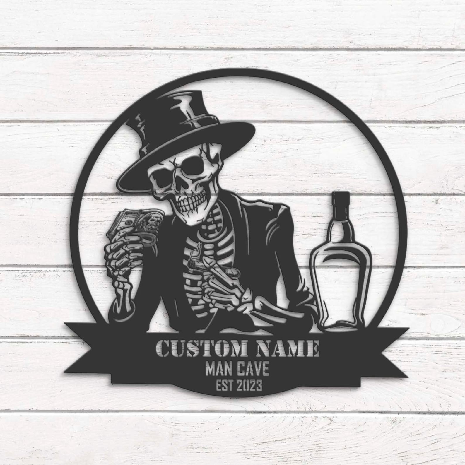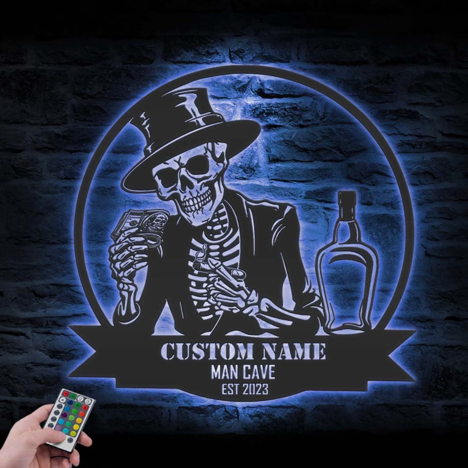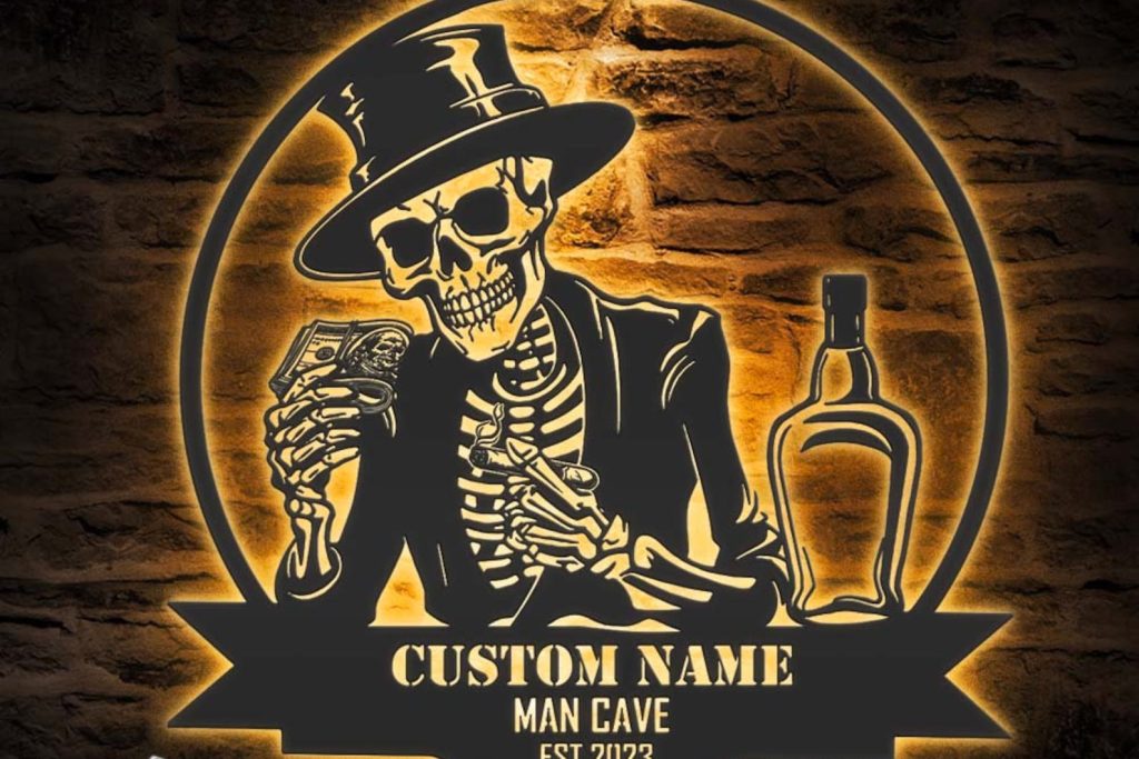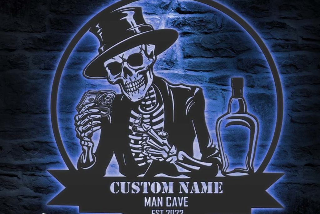 Be the first to review “Custom Skeleton Bourbon Cigar Metal Wall Art – LED Light Sign”
