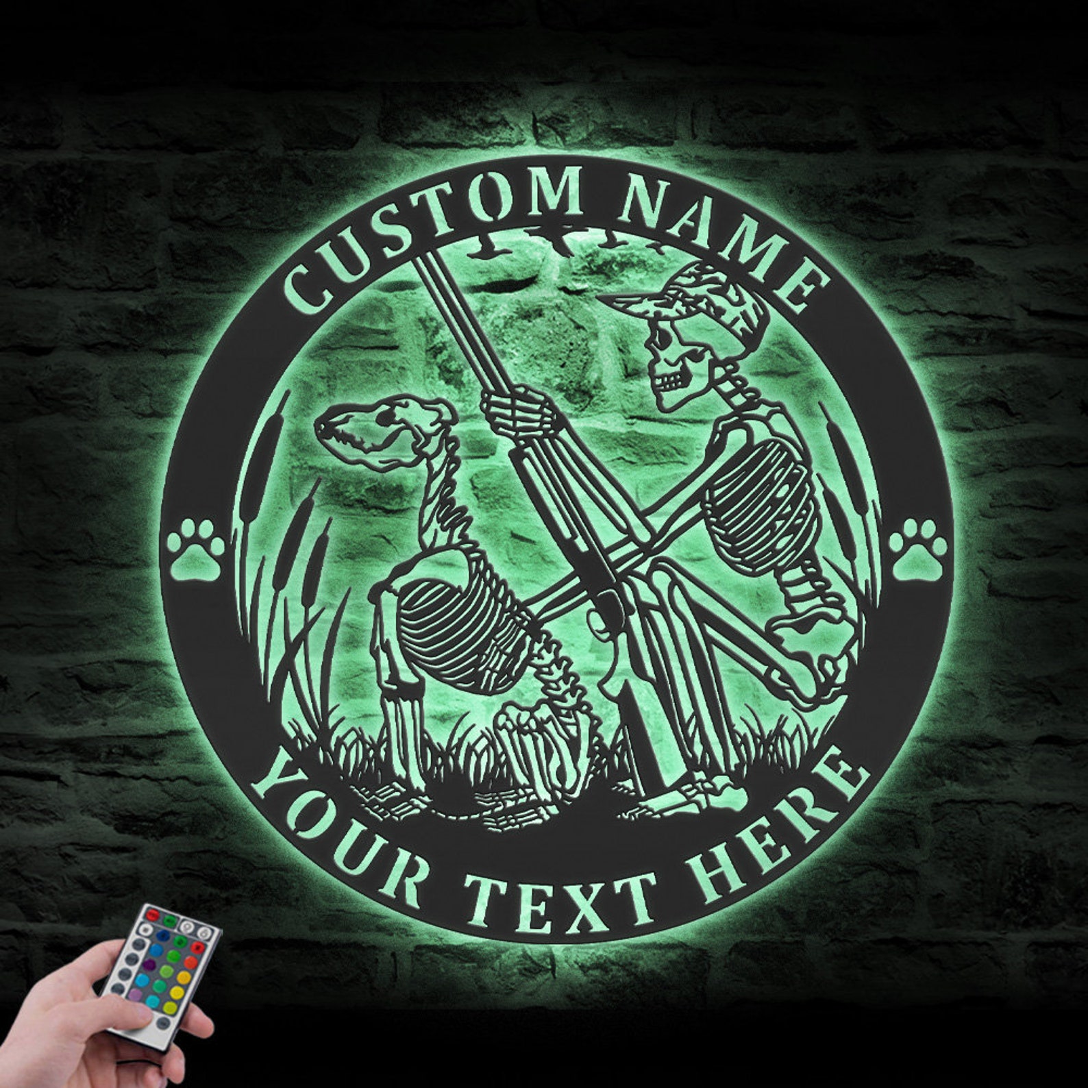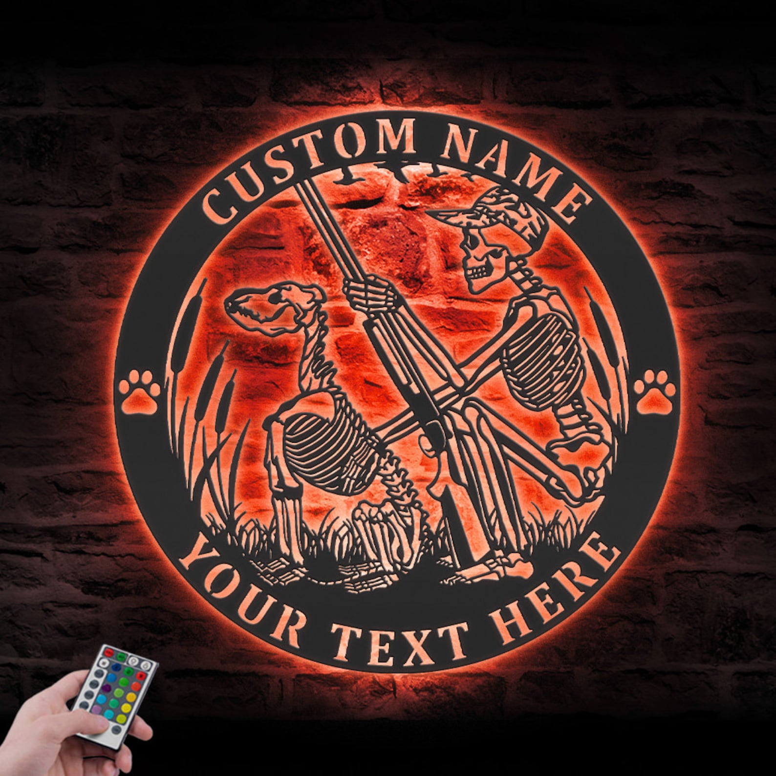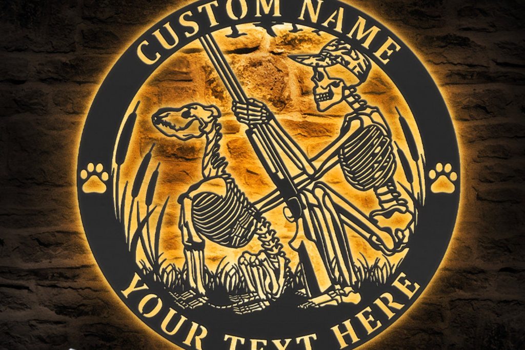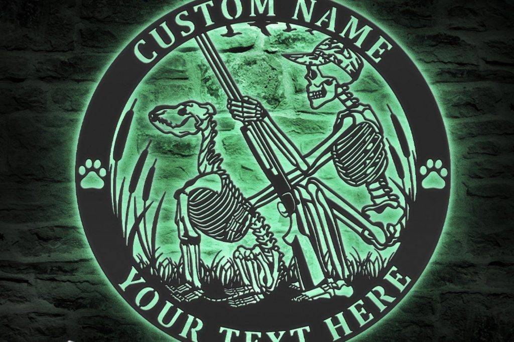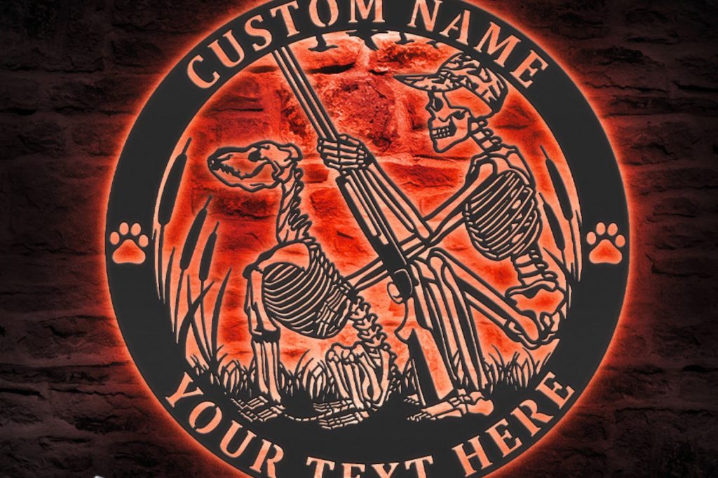 Be the first to review “Custom Skeleton Dog Hunting Metal Sign with LED – Cabin Decor”