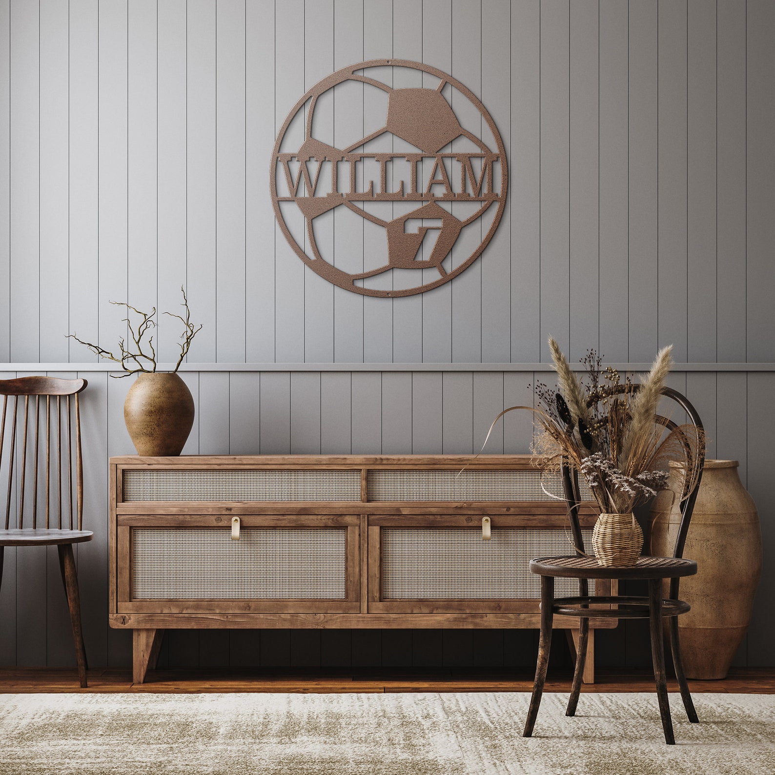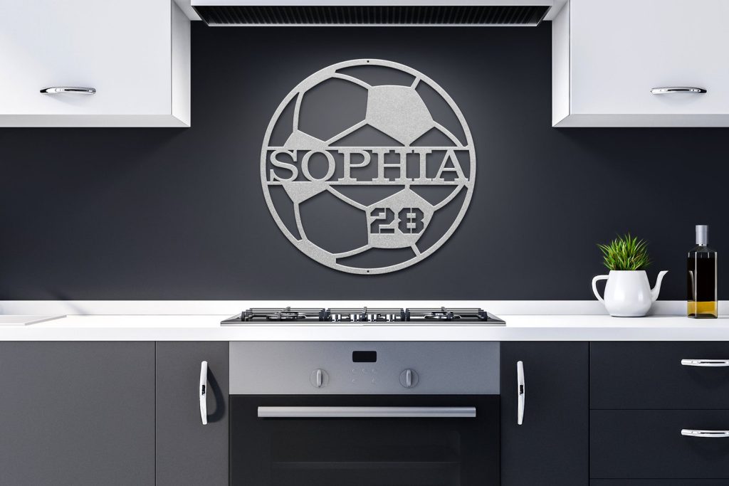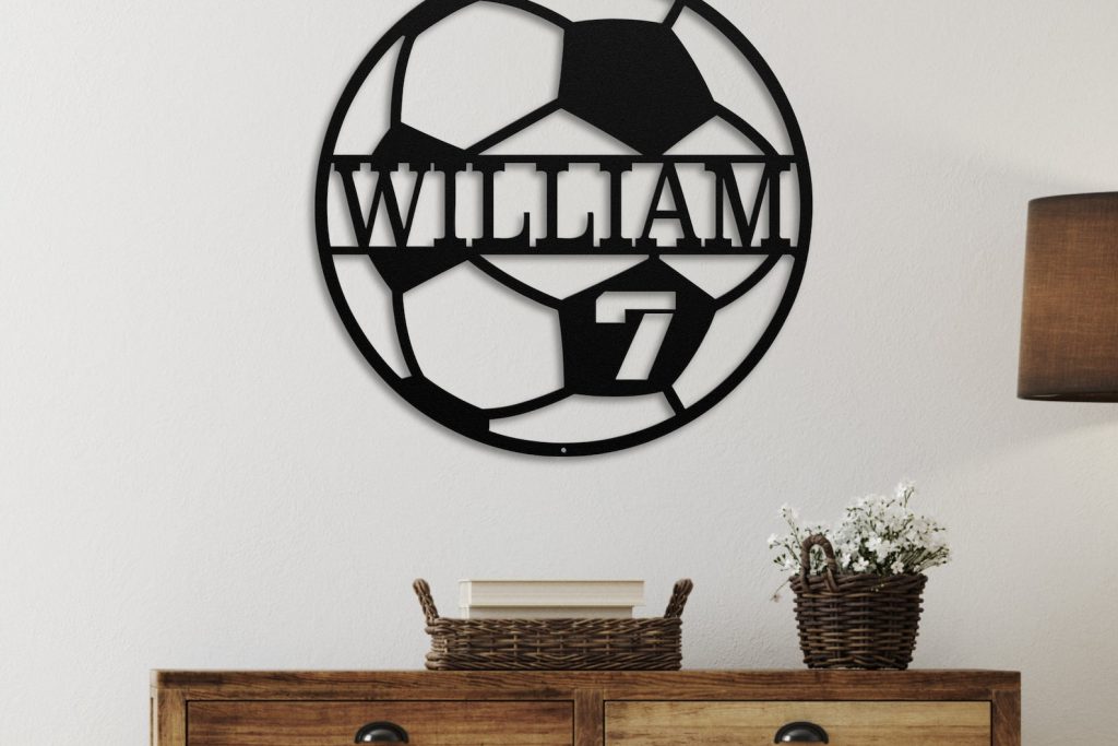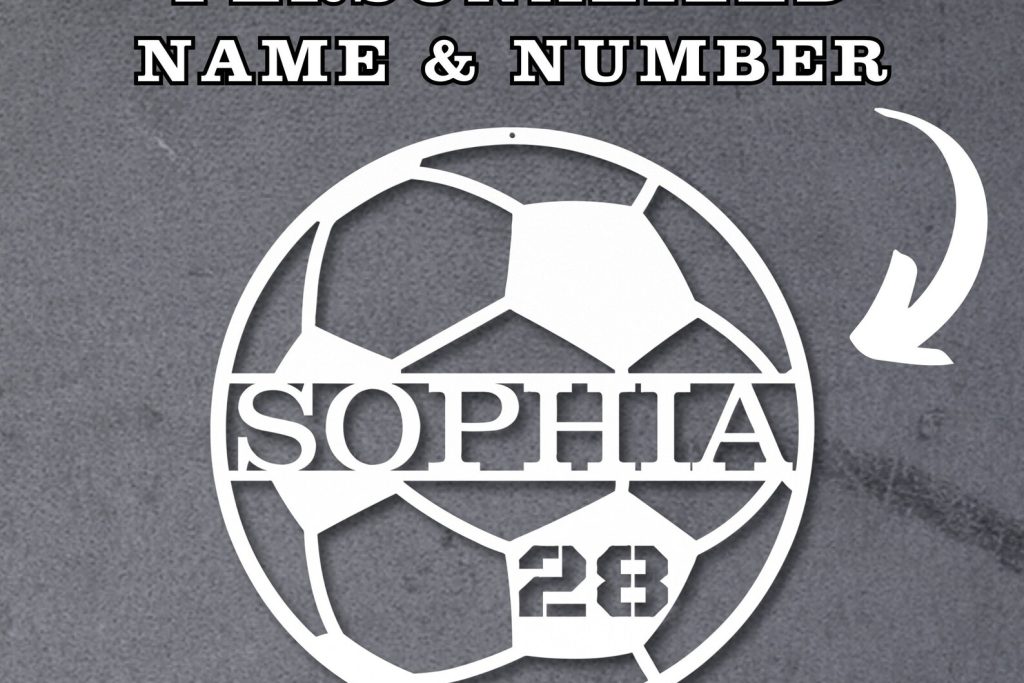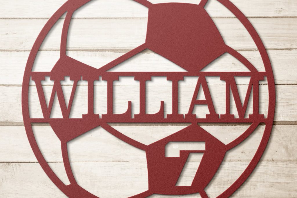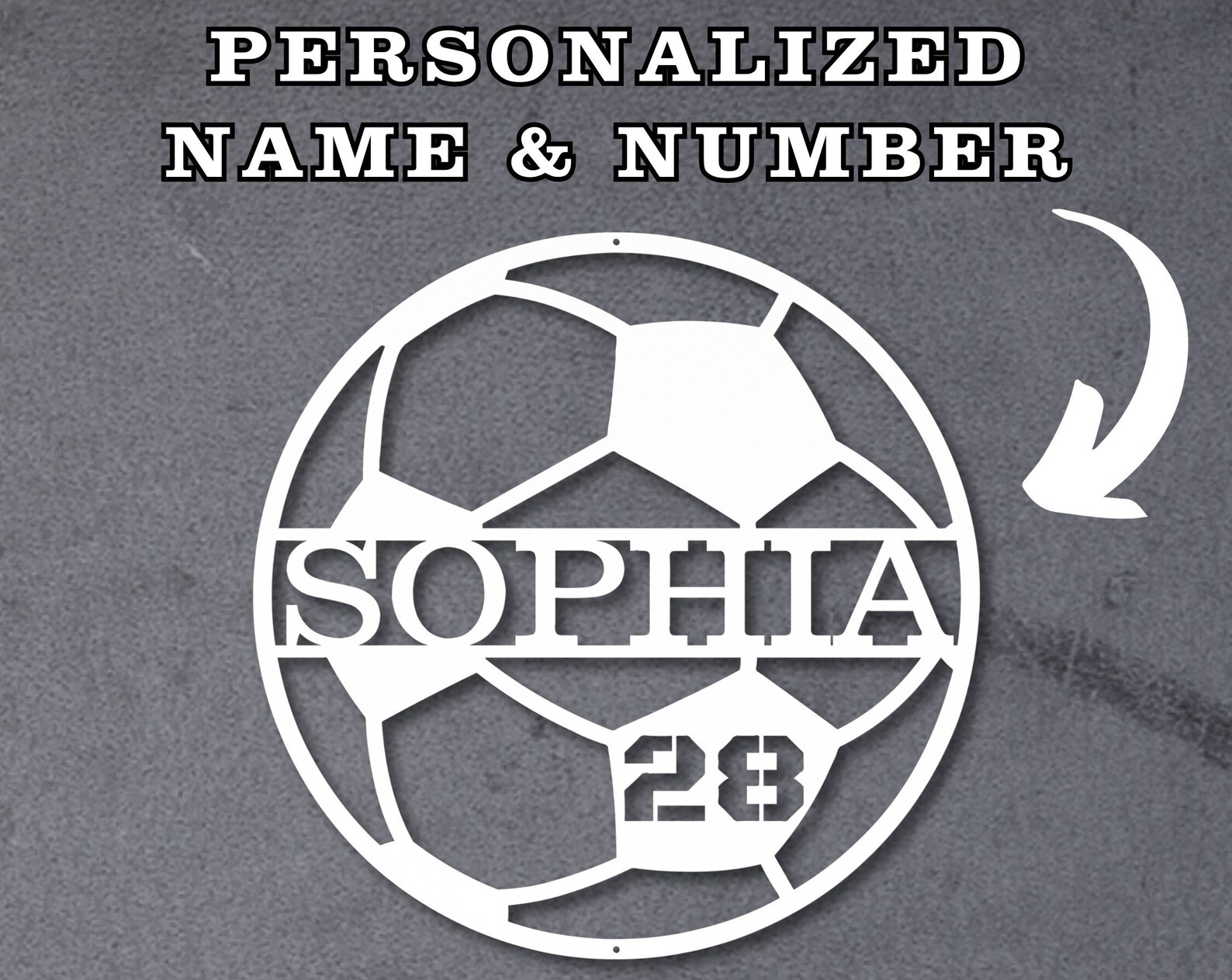 This personalized metal soccer ball sign is the perfect addition to any Soccer Players room! Its sleek design, precut mounting holes and customizable features make it a unique and thoughtful gift for all soccer players.